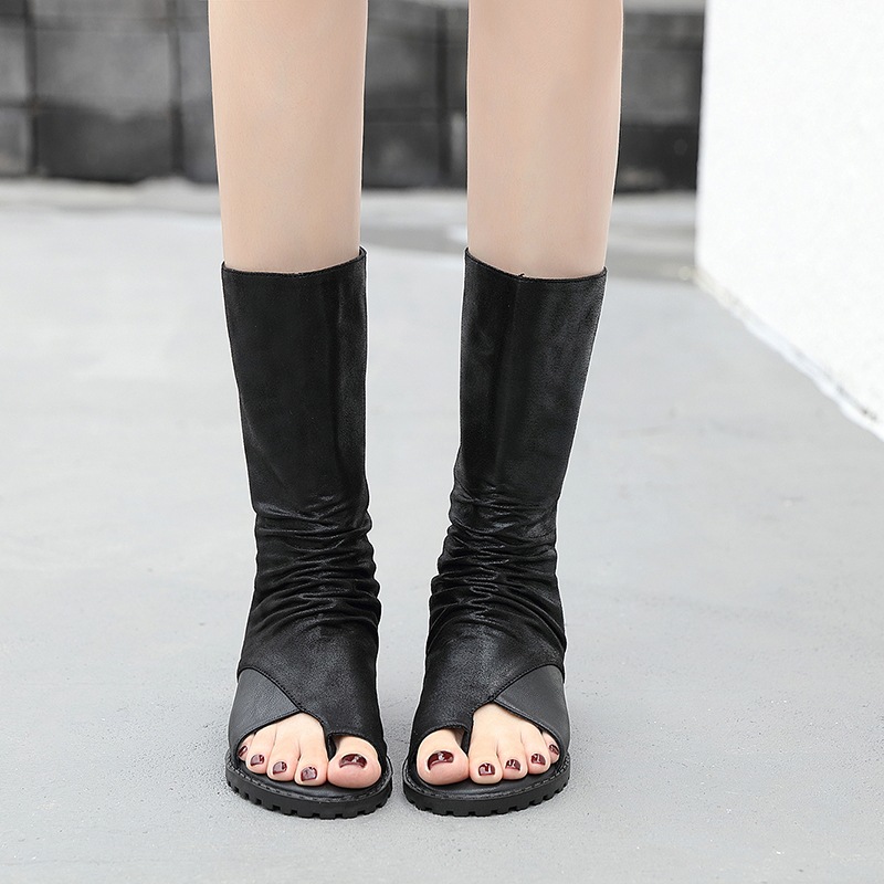 kamames Heel Women's Sandals New Fish Mouth Shoes High Tube Sandals Students Fashion Comfortable Soft-Soled Roman Women's Shoes