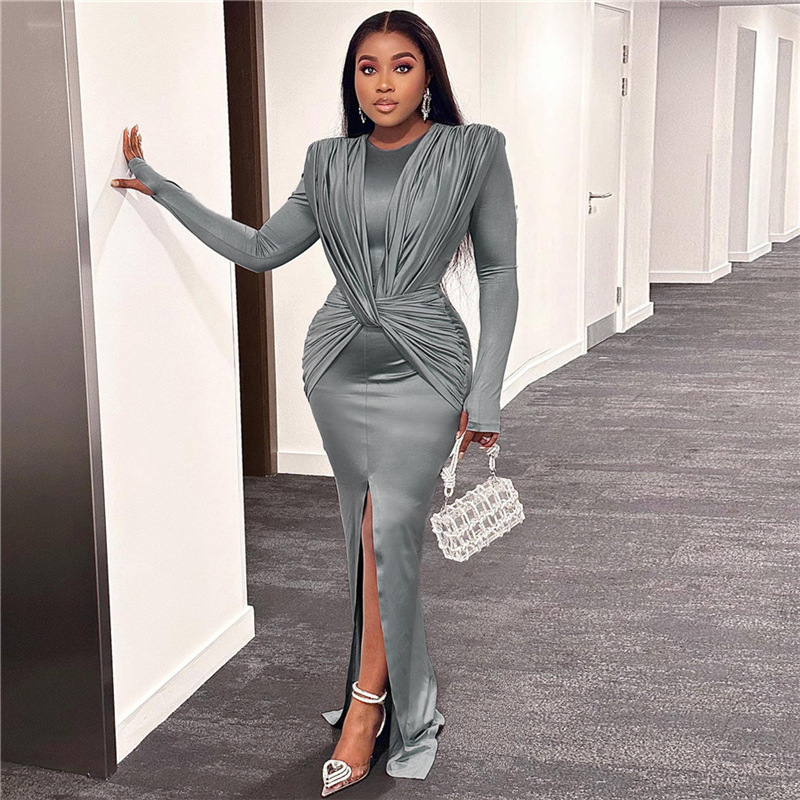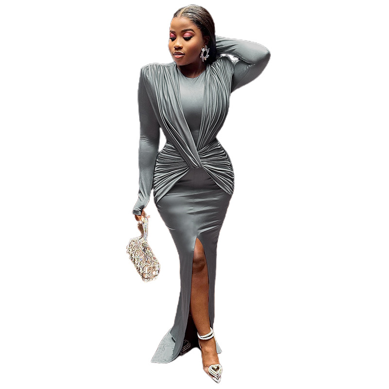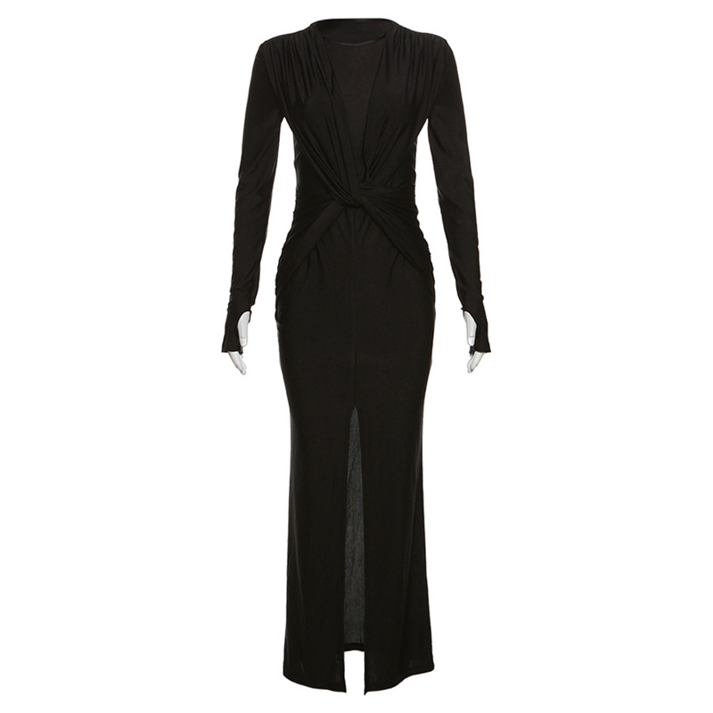 kamames kamames Autumn And Winter New Women's Fashion Round Collar Long Sleeve Slim Slit Design Sense Dress Female