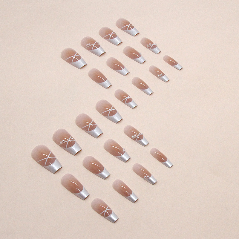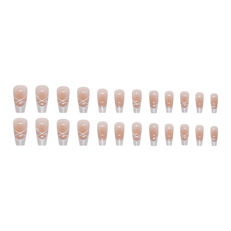 kamames kamames Pure Desire Blush Nail White French Striped Ballet Shoes Fake Nail Pearl Diamond Beautiful Nail Piece