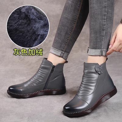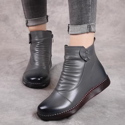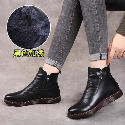 kamames kamames Shoes Cotton Shoes Leather Women's Shoes Winter Ankle Boots Middle-Aged Warm And Velvet Anti-Slip Comfortable Elderly Leather Shoes