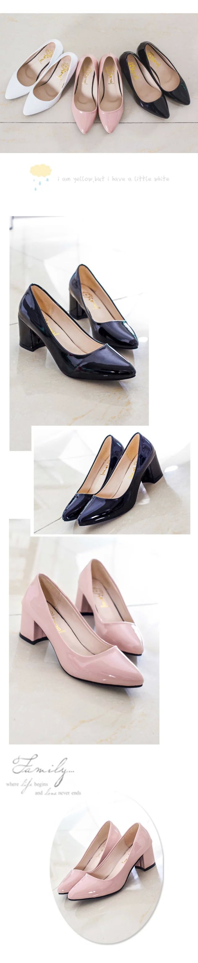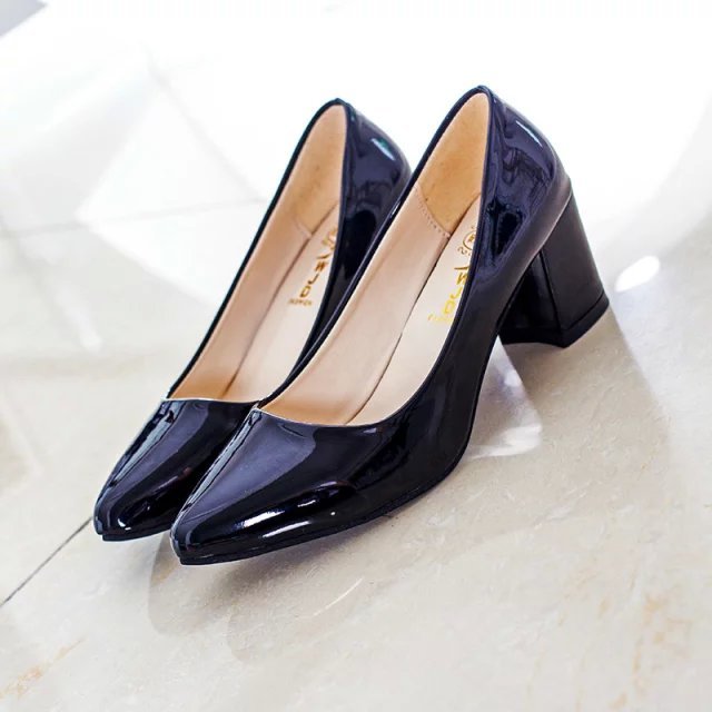 kamames New Women Pumps Black High heels 6cm Lady Patent leather Thick with Autumn Pointed Single Shoes Female Sandals Big 33-41