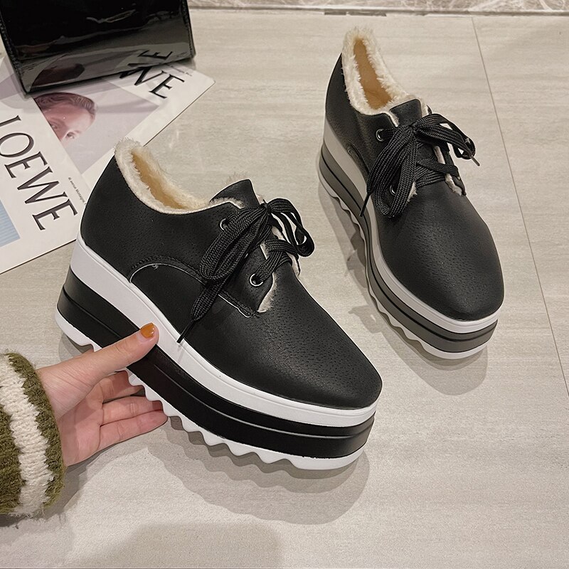 kamames New Autumn Winter Women Plus Velvet Thick Warm Cotton Shoes Female Snow Boots Casual Increase Platform Thick Sole Sneakers