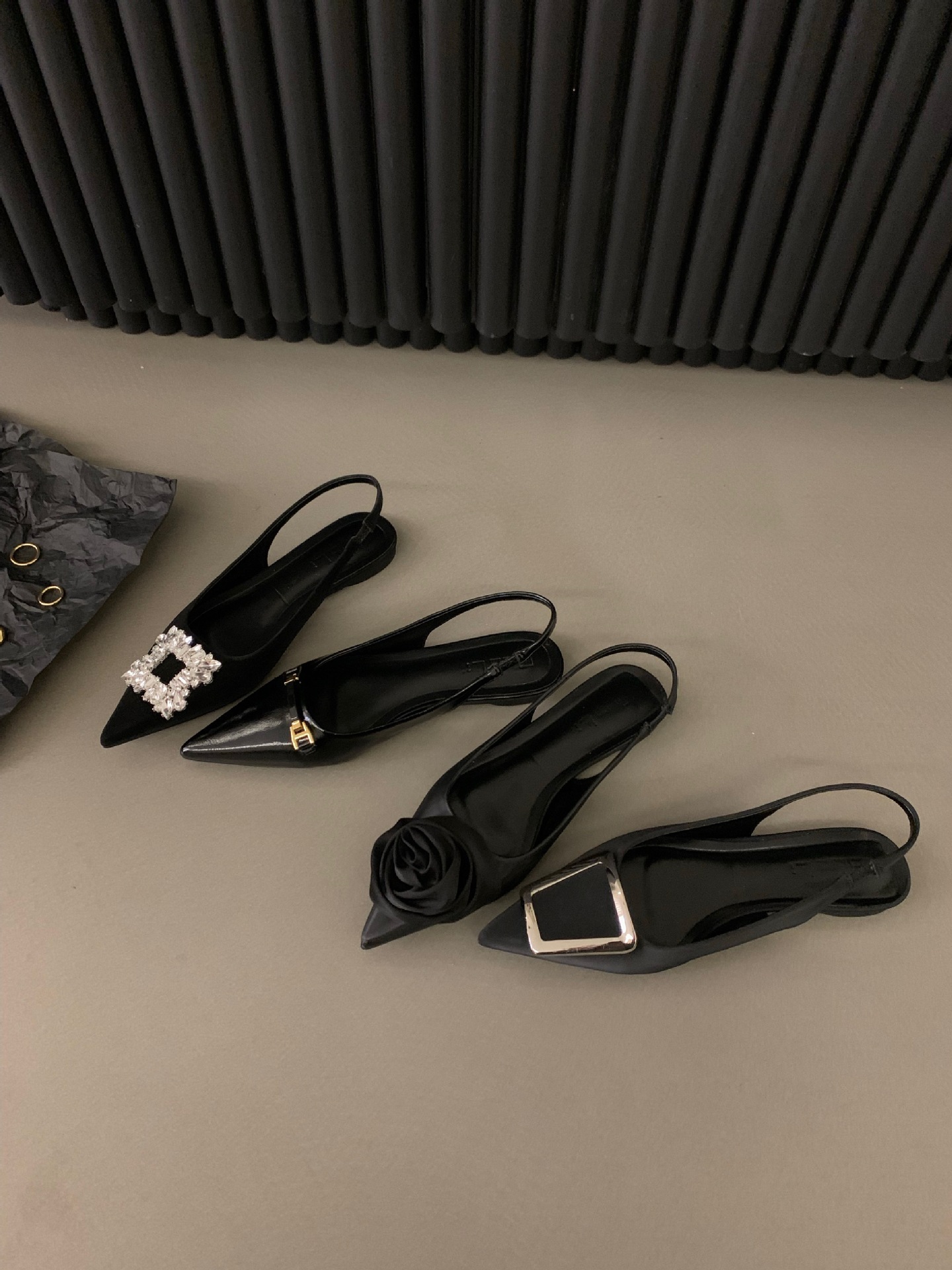 kamames kamames Flat Black Head Sandals Fairy Shoes 2023 New Spring And Summer Pointed Rhinestone Temperament Single Shoes