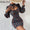 kamames Women Elegant Long Sleeves All Over Print with Disty Floral Folds Keyhole Bodycon Mini Sexy Party Dresses