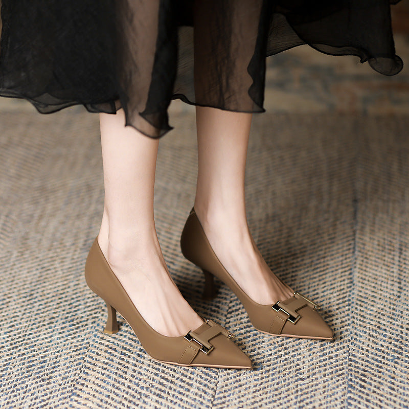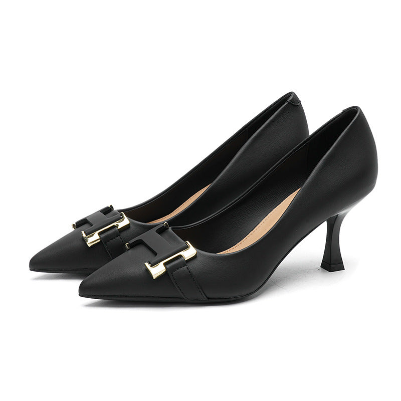 2025 7955-5 Simple and fashionable H-buckle single shoes for women 2025 new pointed thin heels high heels banquet single shoes for women