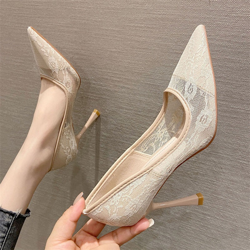 2025 988-6 Korean version of sexy lace temperament high heels pointed thin heels single shoes fairy fairy style super high heels women's shoes