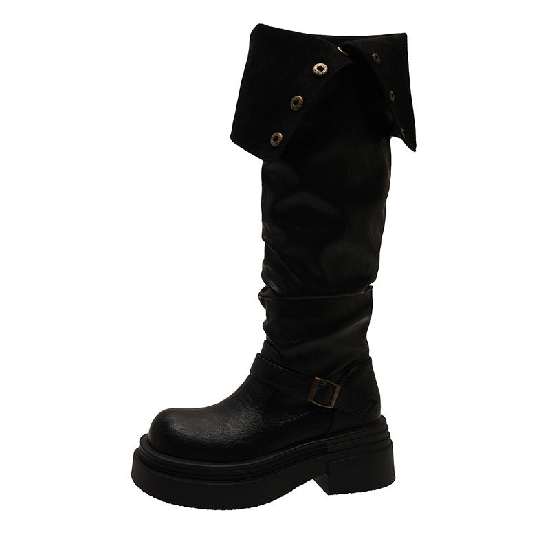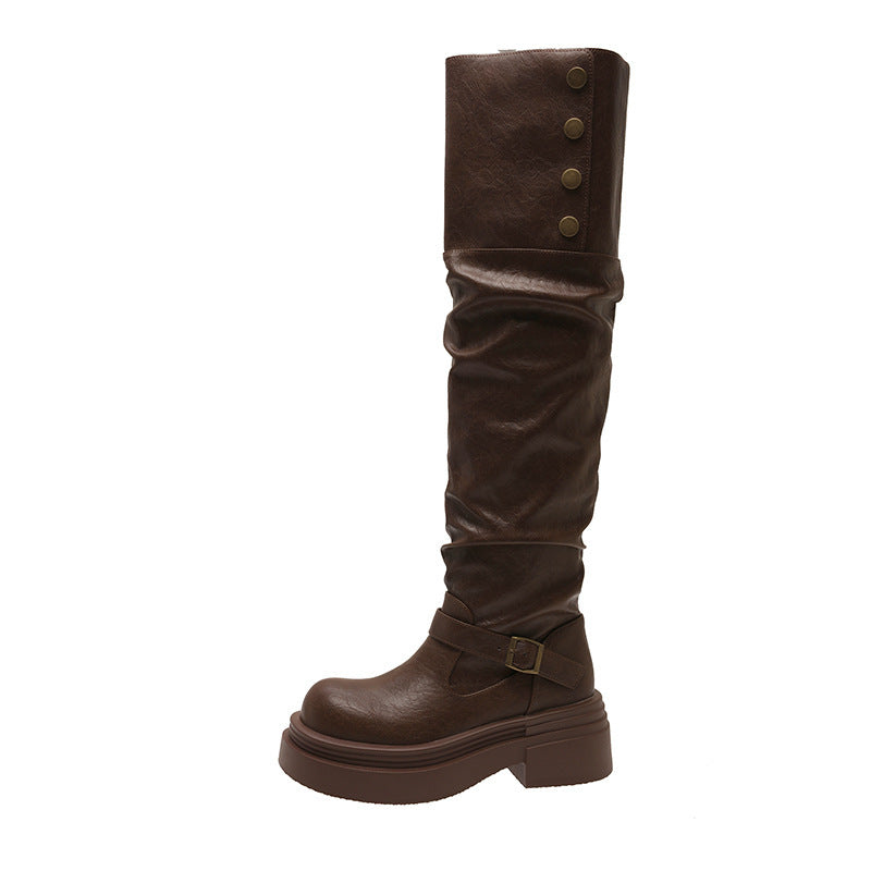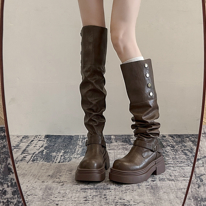 2025 Brown British platform boots women's winter new knee thick heel premium stacking boots retro tall knight boots
