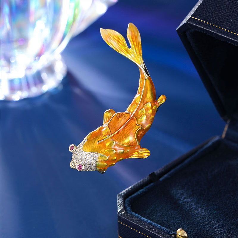 2025 Carp Yue Longmen Creative Koi Brooch High-end Personality Niche Design Sense Dripping Oil Inlaid Zircon Corsage Accessories