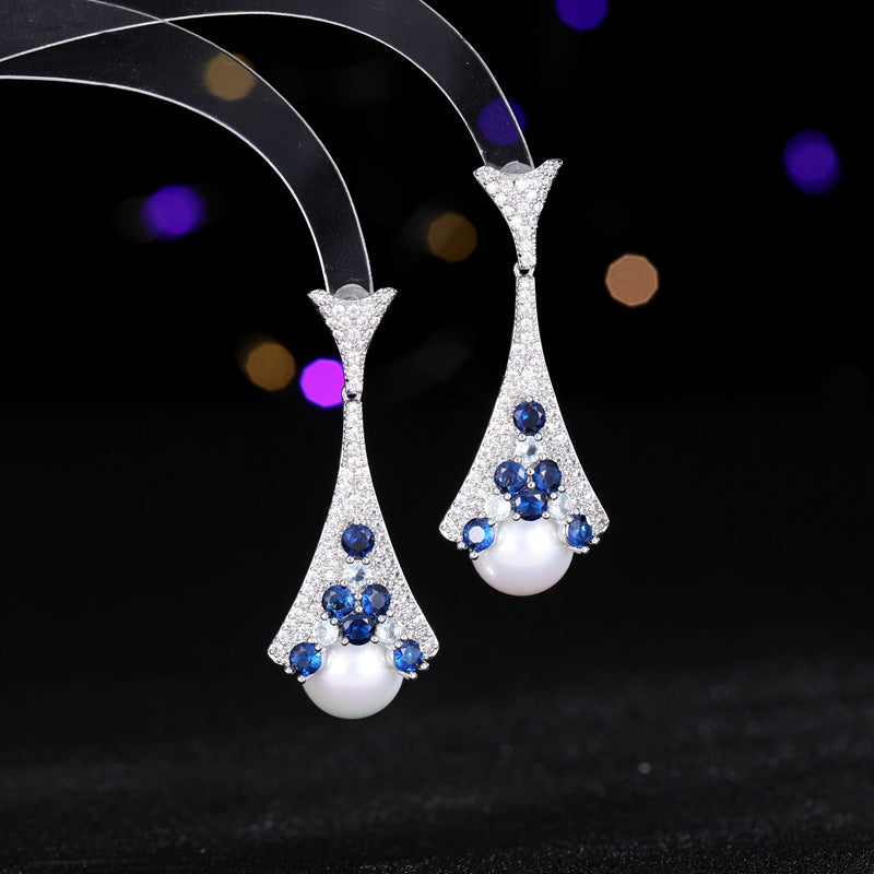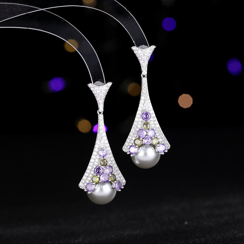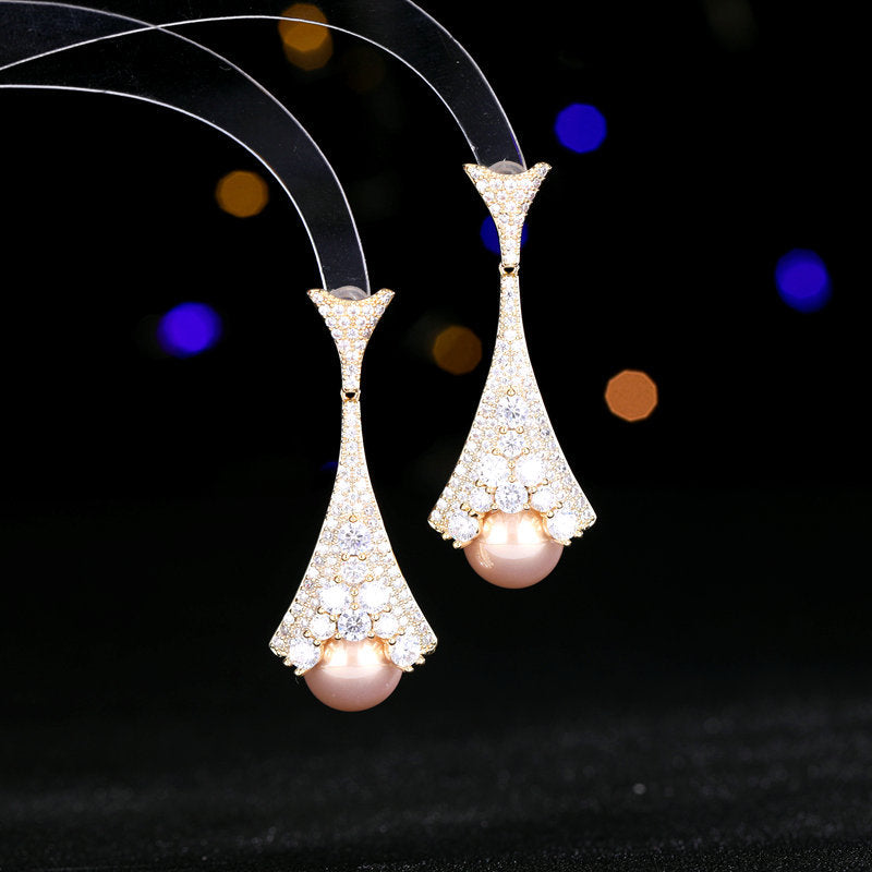 2025 Elegant temperament exaggerated atmosphere heavy industry earrings wholesale copper inlaid zircon design feeling water drop pearl earrings women
