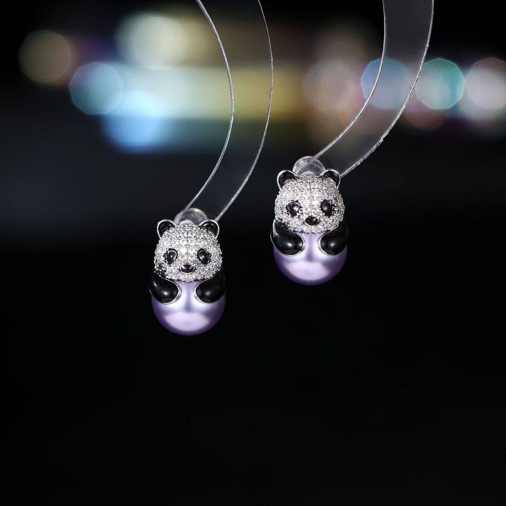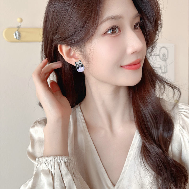 2025 Fashion OL cute micro-inlaid zircon panda pearl earrings s925 silver needle niche high-end light luxury stud earrings accessories women