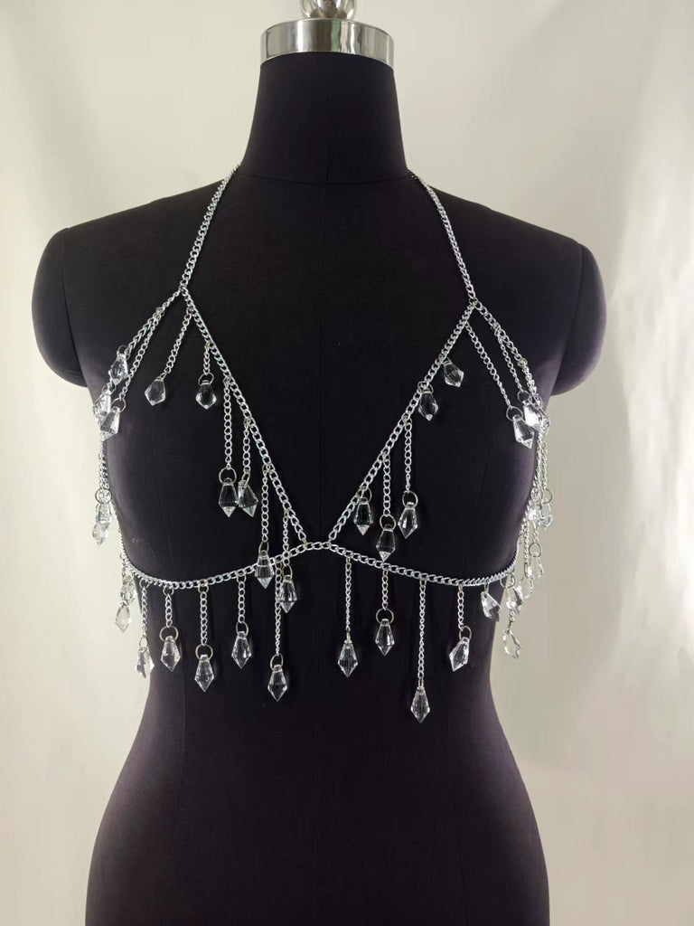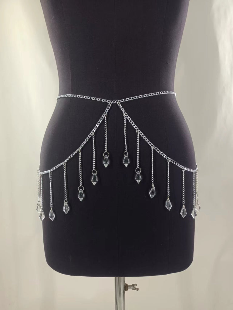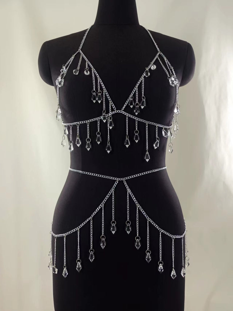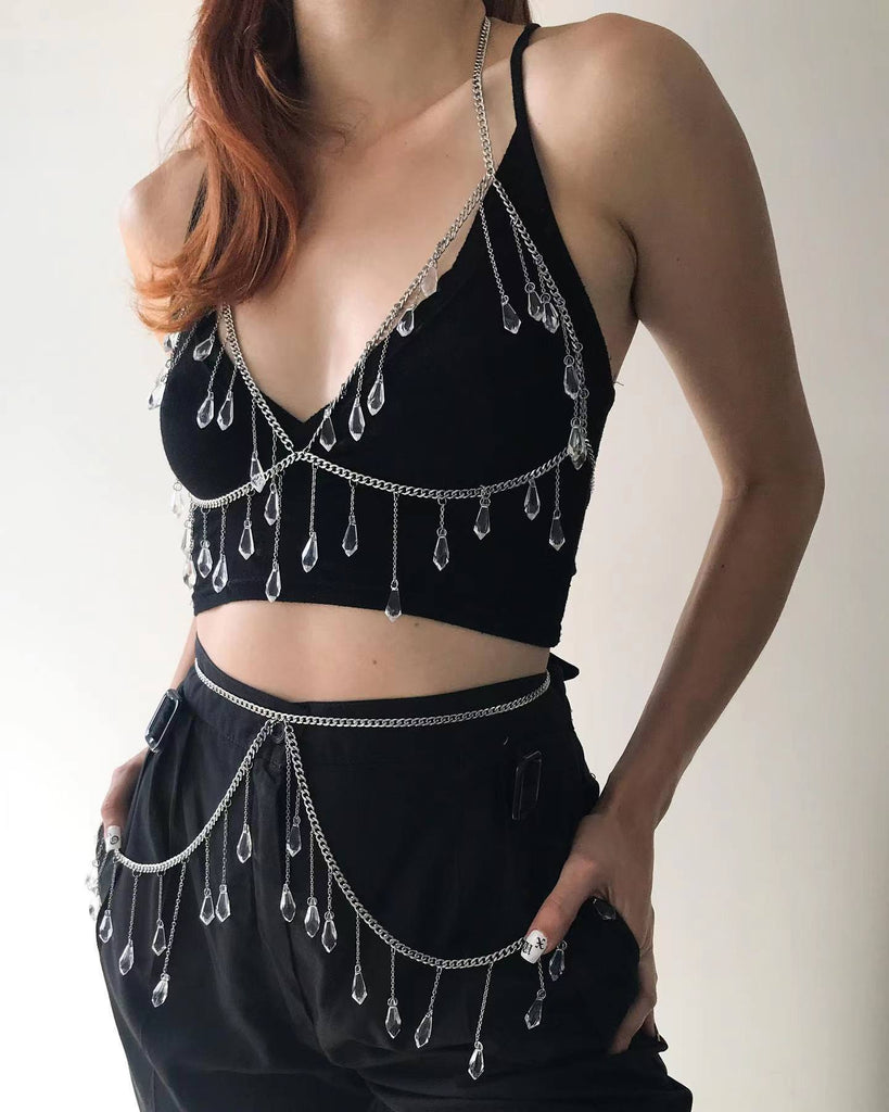 2025 FB3476 body chain transparent crystal gemstone pendant fringed chain chest chain waist chain combination body chain