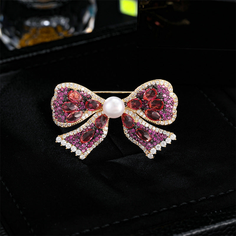 2025 High-end natural freshwater pearl corsage temperament luxury high-end zircon suit coat accessories bow brooch