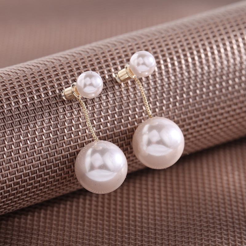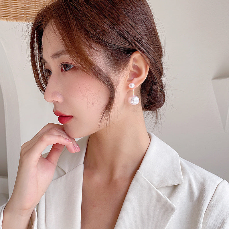 2025 Korea Dongdaemun personalized earrings temperament two wear stud earrings 925 silver needle earrings women's size pearl front and rear earrings