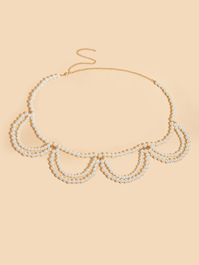 2025 MW3203 waist chain simple personality multi-layer wave fringe pendulum chain pearl chain waist chain waist decoration
