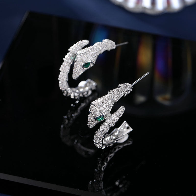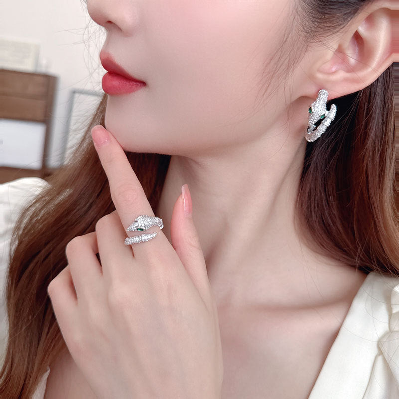 2025 New fashion, personalized and simple snake head stud earrings, micro-inlaid zircon temperament snake earrings jewelry set
