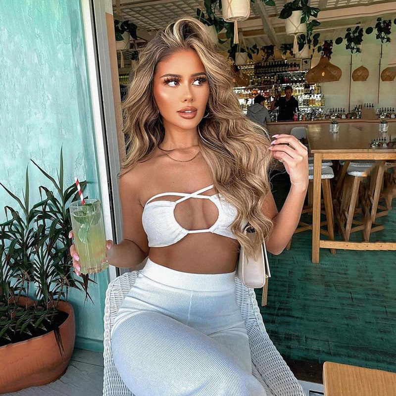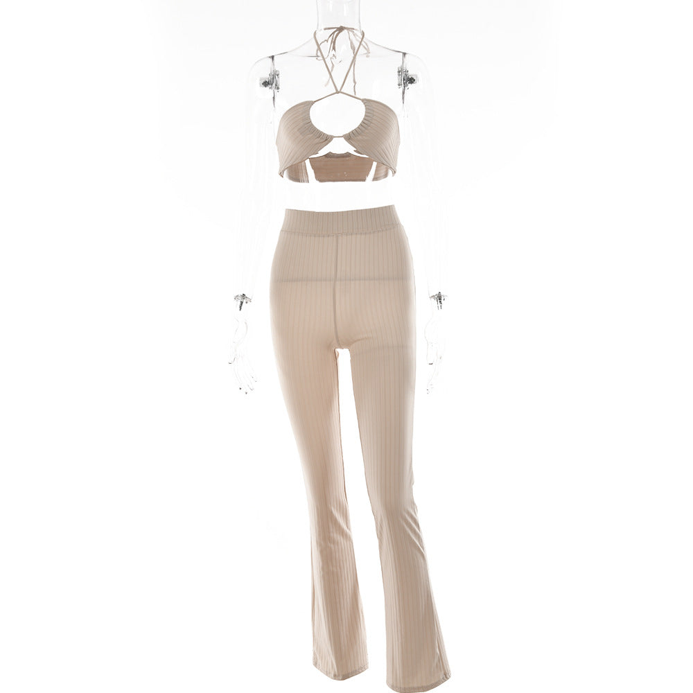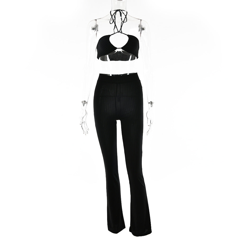 2025 Popular, ins summer new casual suit sexy tube top drawstring neck top high waist pit strip trousers women