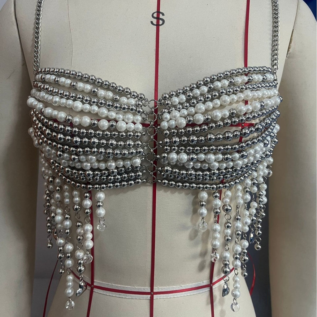 2025 Q5034Y vest fashion beaded Bra neck top small vest body chain chest chain real shot