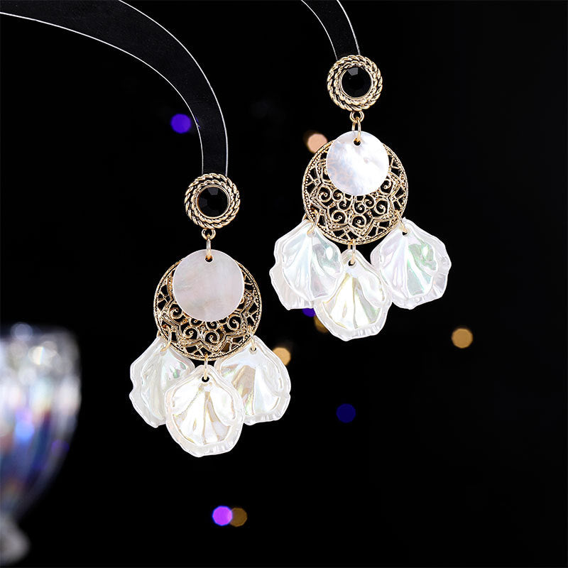 2025 Retro exaggerated temperament shell long fringed earrings women's high sense atmospheric fashion earrings live broadcast popular earrings