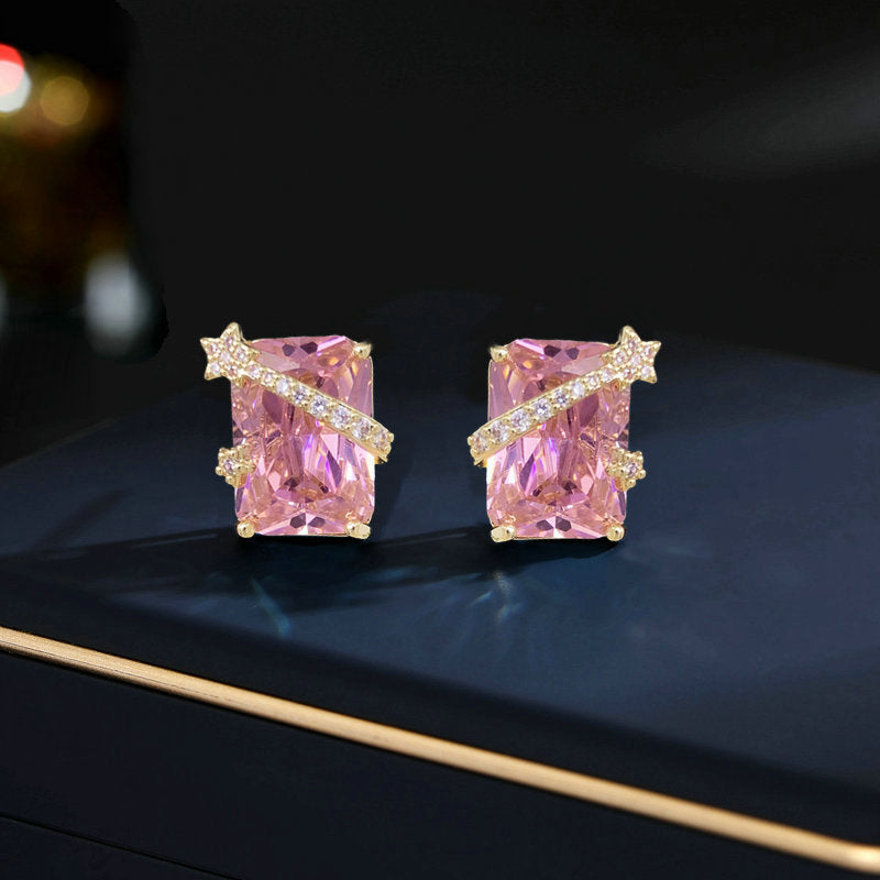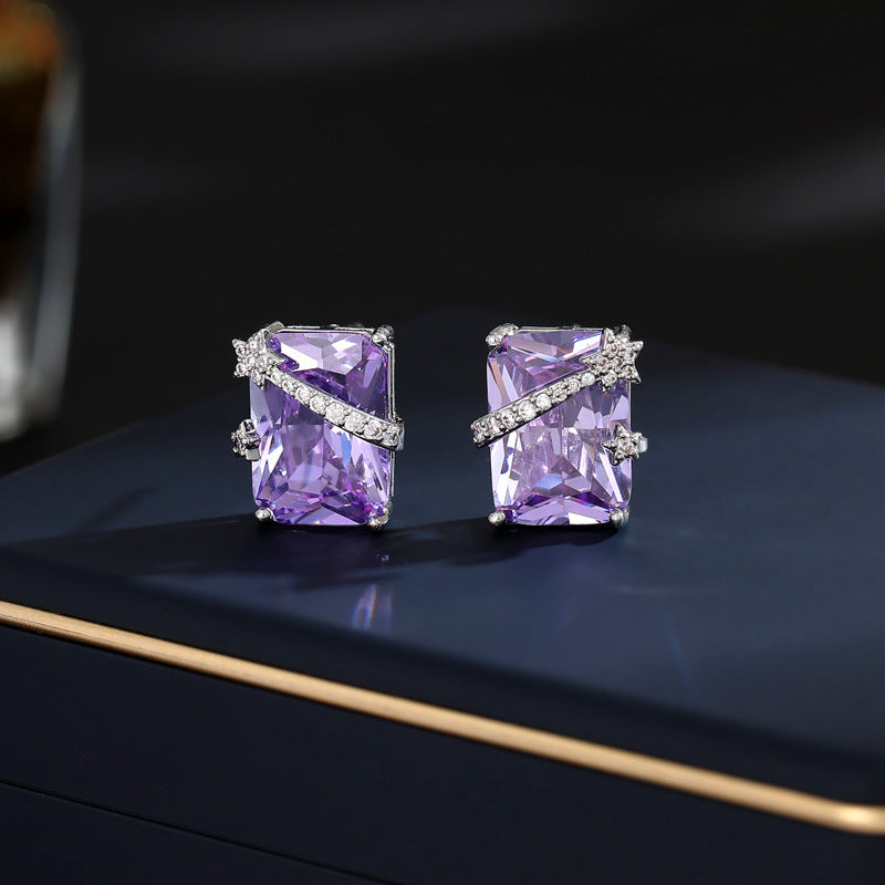 2025 S925 silver needle simple geometric rectangular super flash pentagram star zircon inlay niche design meteor stud earrings
