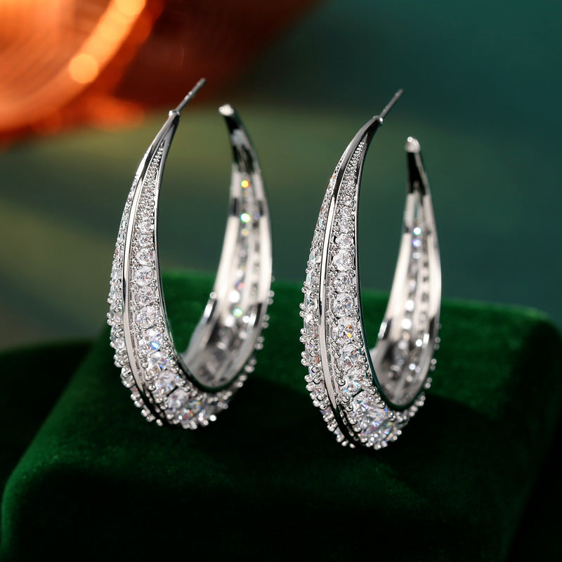 2025 S925 silver needle style earrings Internet celebrity temperament light luxury earrings exaggerated atmosphere C-shaped large circle earrings