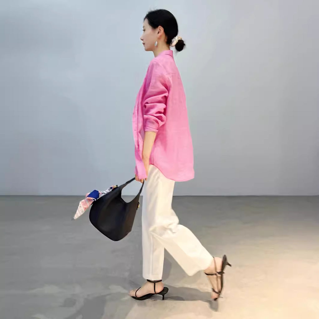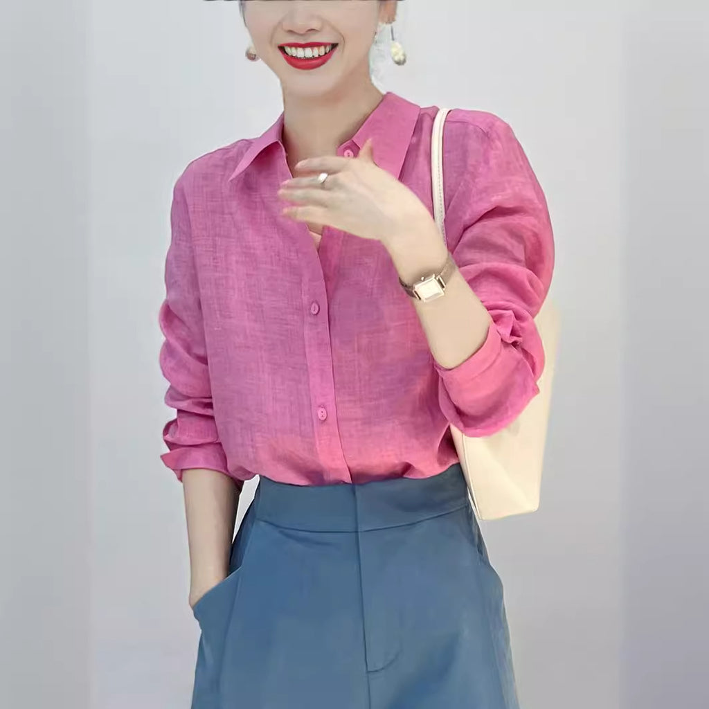 2025 spring and summer girl's heart ebony sauce, fried twill ramie cardigan with shirt top B0463