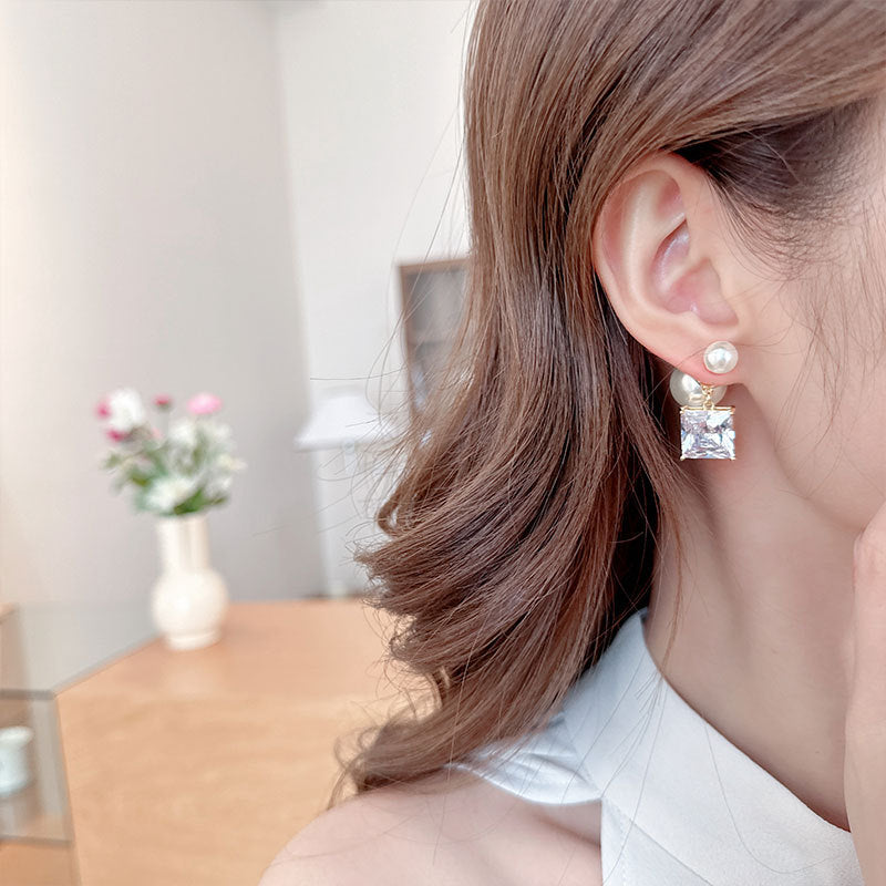 2025 temperament celebrity court retro high-end sense square zircon pearl stud earrings fashion light luxury medium antique earrings