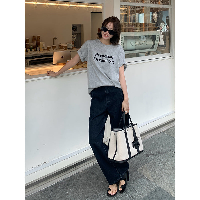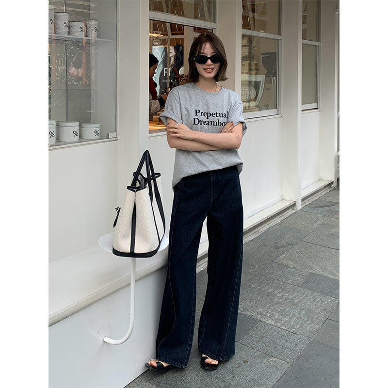 2025 THE MIND wide-leg jeans women's 2025 thirteen lines spring Korean version of high-waisted versatile casual trousers N15