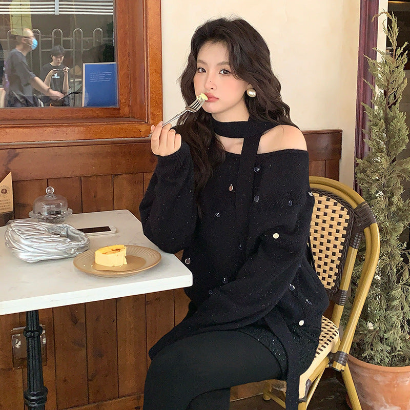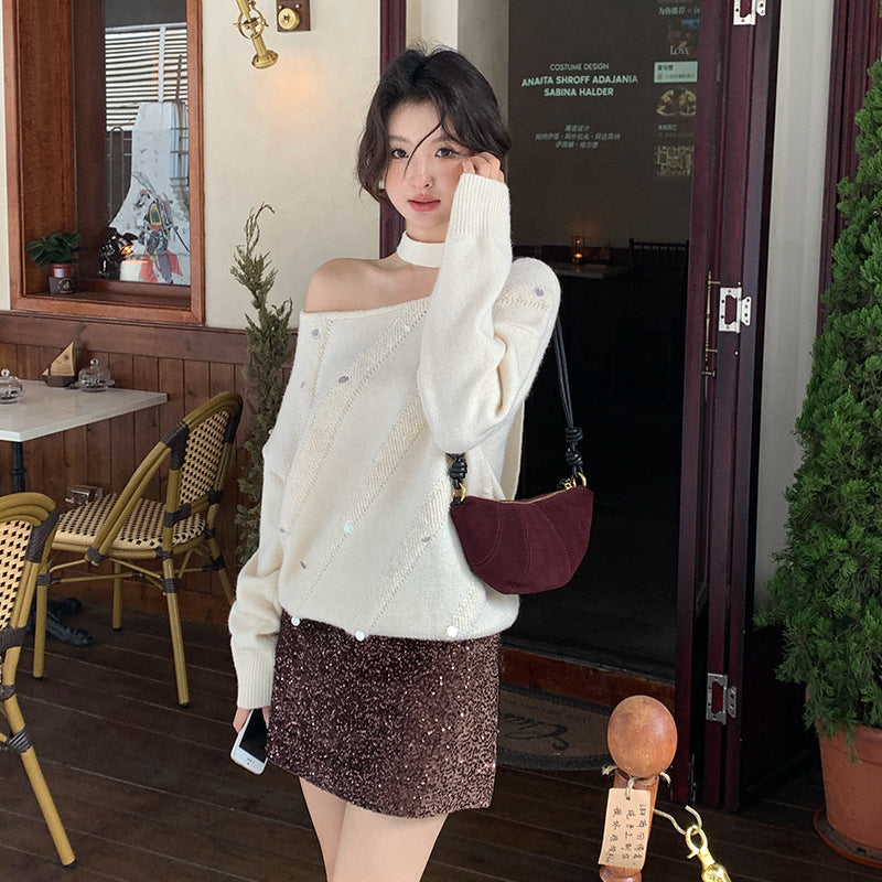 2025 Thirteen Lines popular Autumn and Winter New ins Temperament Elegant Neck Knitted Sweater Versatile Sweater Women 25165
