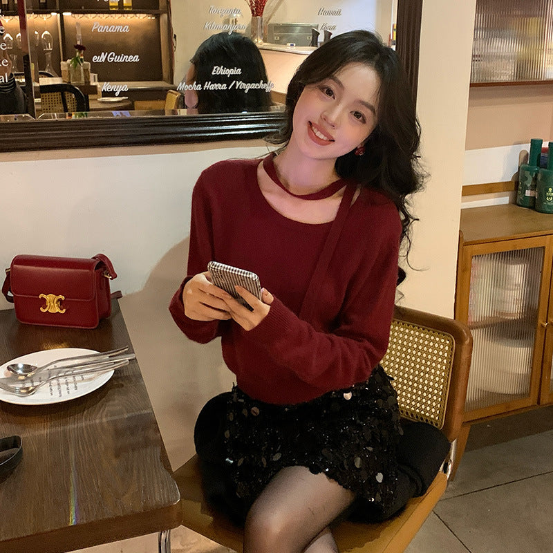 2025 Thirteen Lines popular Autumn and Winter New Raccoon Fleece Elegant Neck Knitted Sweater Versatile Sweater Women 25197