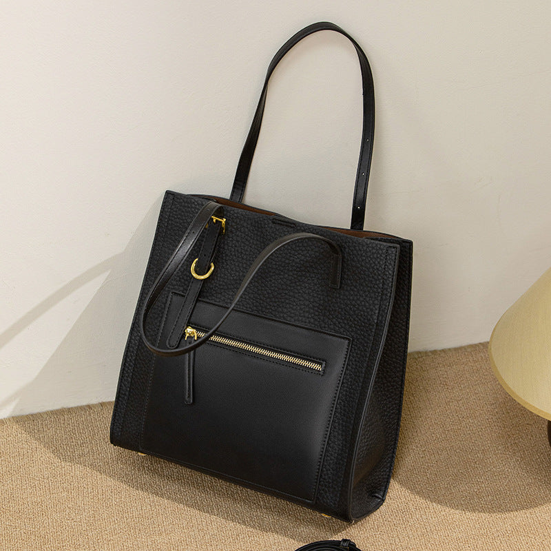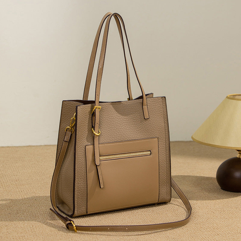 2025 Tote bag women's autumn and winter large-capacity shoulder bag high-end sense contrasting color Korean version handbag commuter tote bag