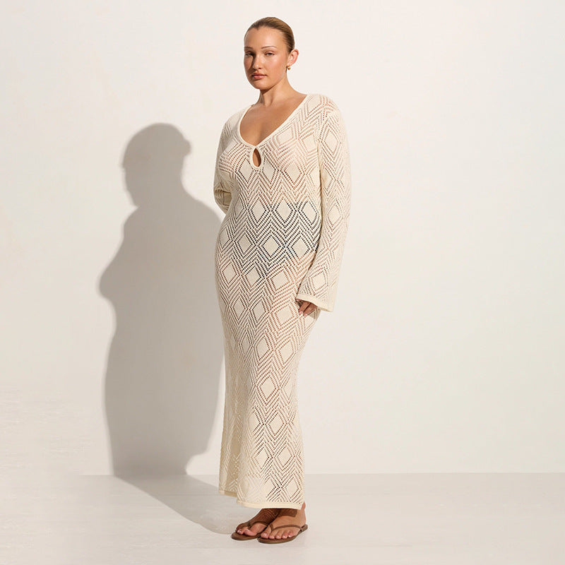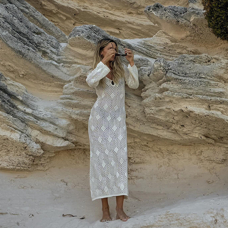 2025Popular, popular summer new beach skirt women solid color sexy knitted beach bikini swimsuit blouse sunscreen clothing