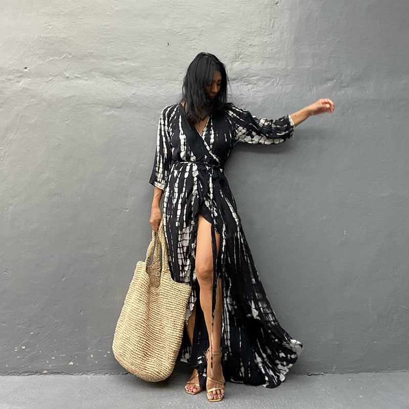 2025popular summer new beach skirt women's leisure vacation printed pullover bikini swimsuit blouse sunscreen clothing