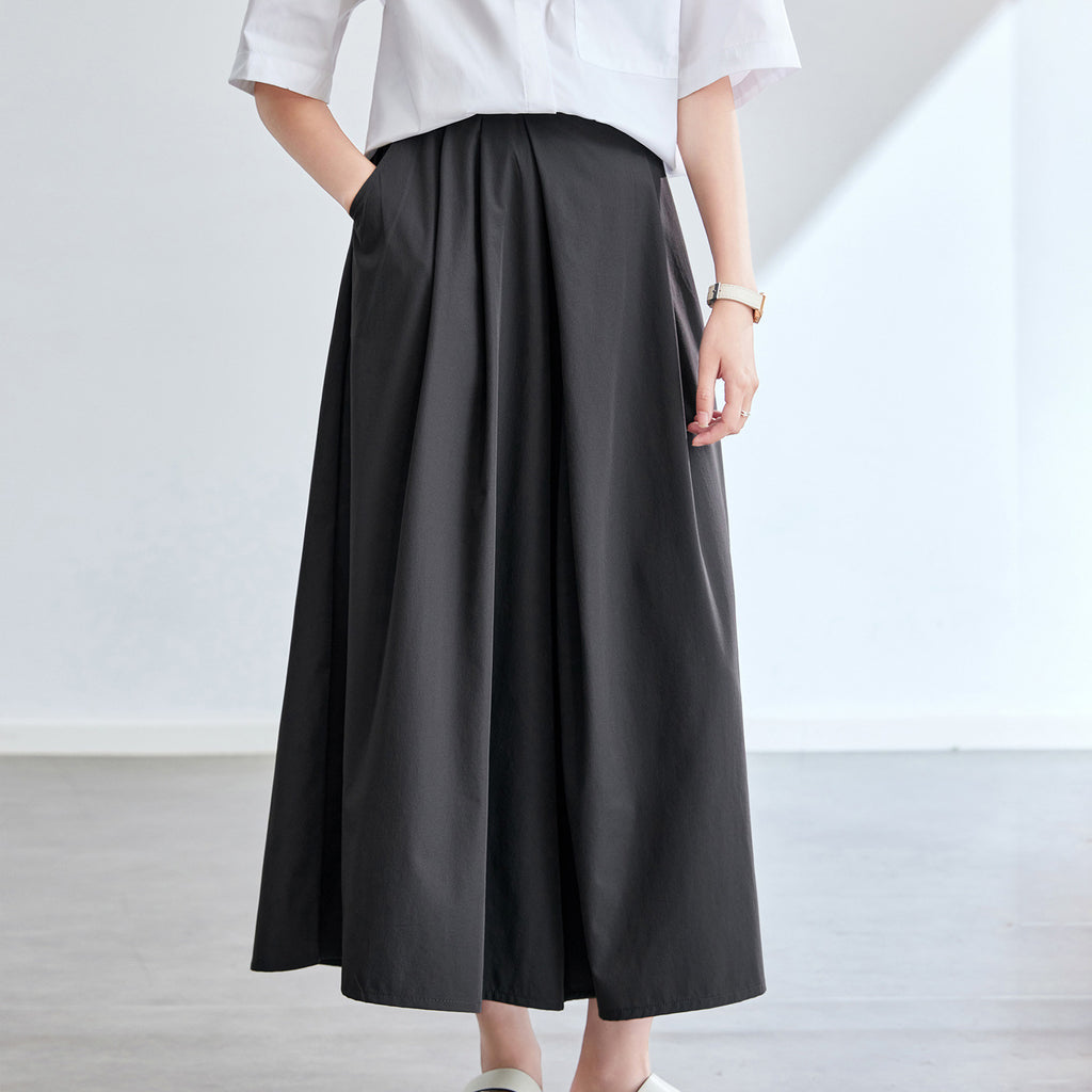 Cotton cocoon, commuter pocket elastic waist wide-leg nine-point pants, summer new fashionable versatile and thin pants
