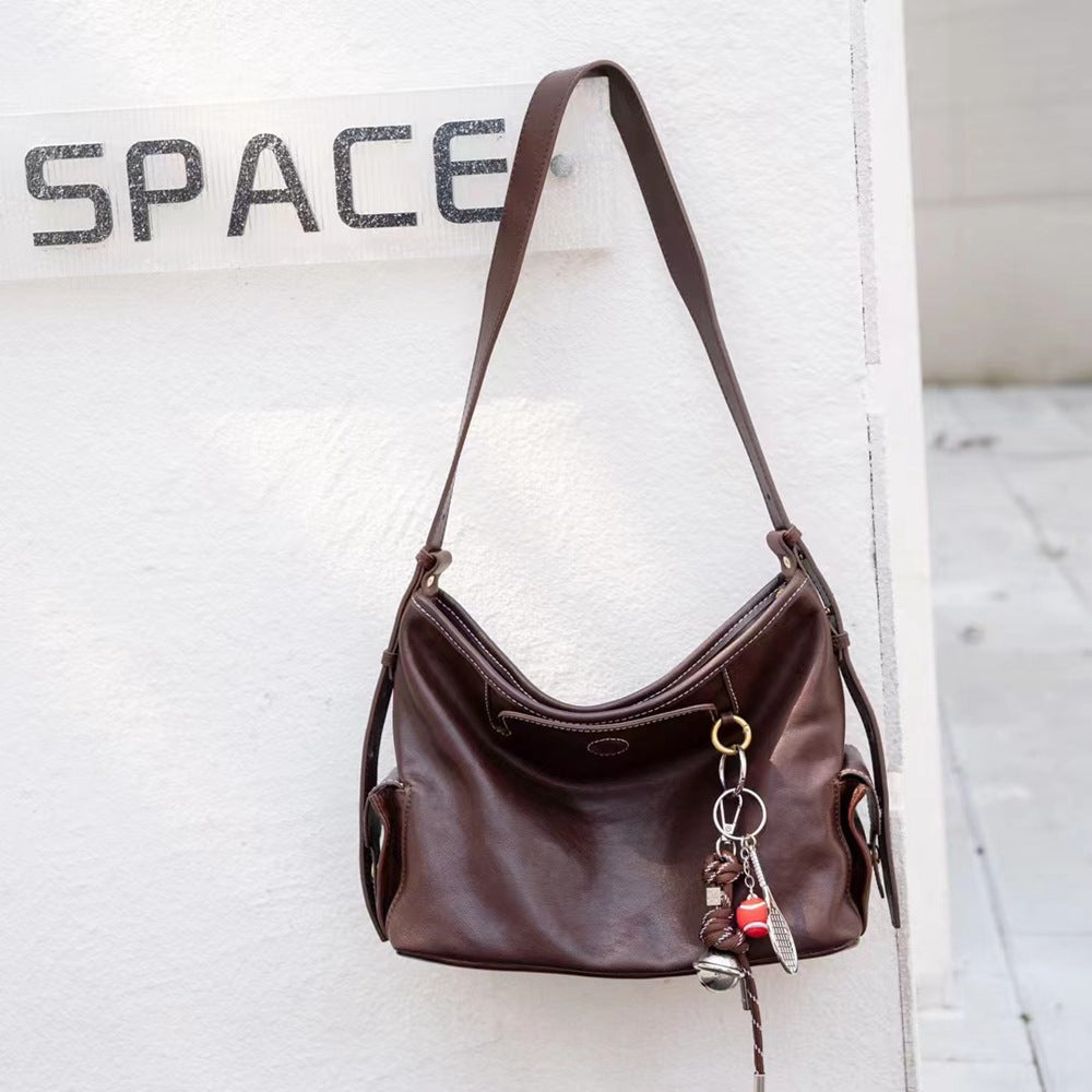 Fashion retro large-capacity tote bag New genuine leather women's bag versatile first-layer vegetable tanned leather crossbody shoulder bag 9004