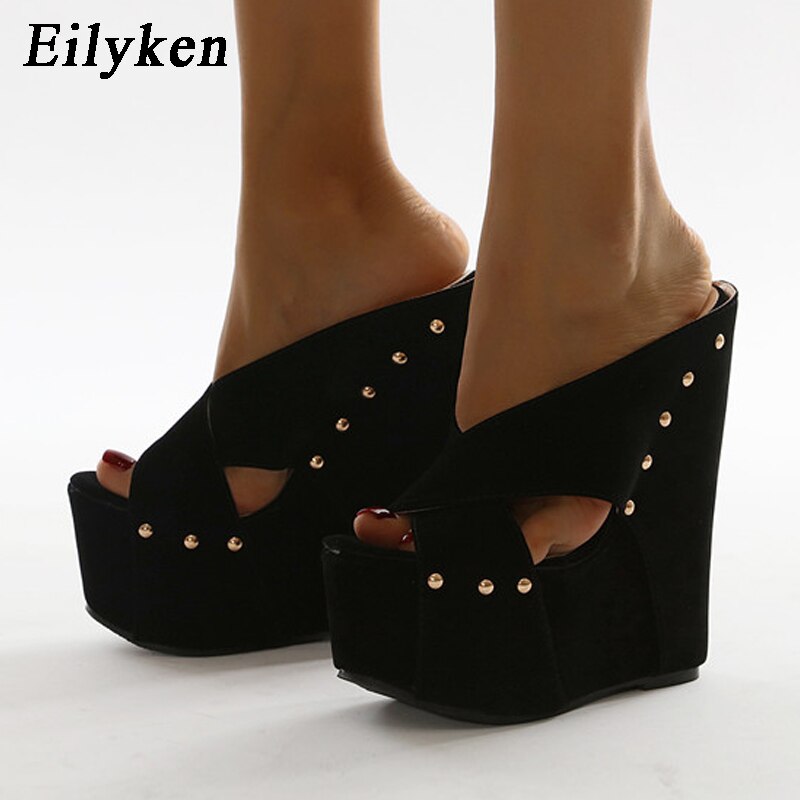 kamames 2023 New Summer Women Peep Toe Platform Wedges Slippers Sandals Fashion Ultra High Heels Female Shoes Pumps Size 35-42