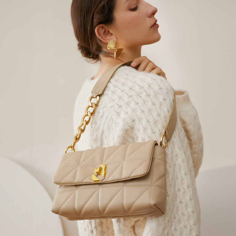 KAMAMES 2025 Rhombus chain underarm bag popular new commuter bag leather shoulder women's bag fashionable versatile messenger bag