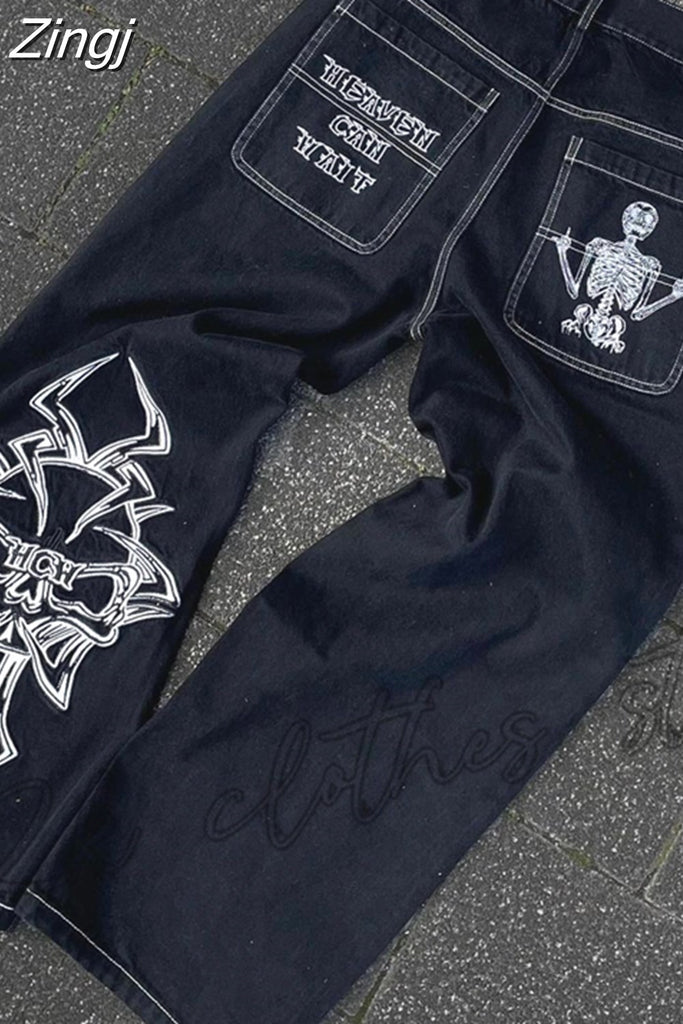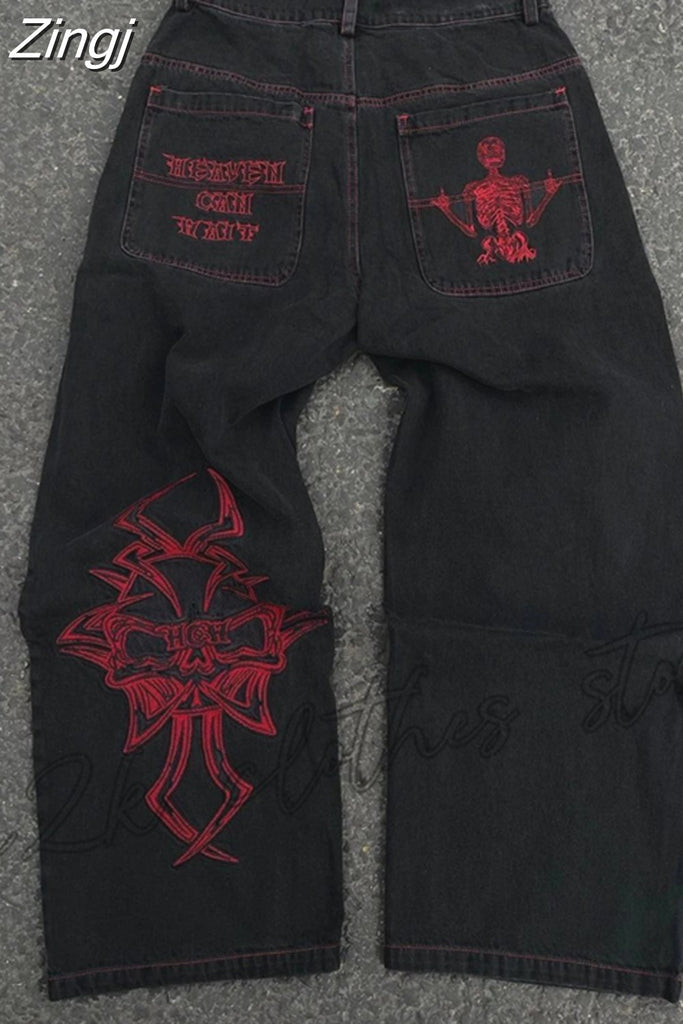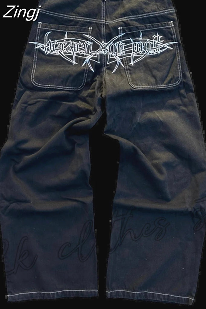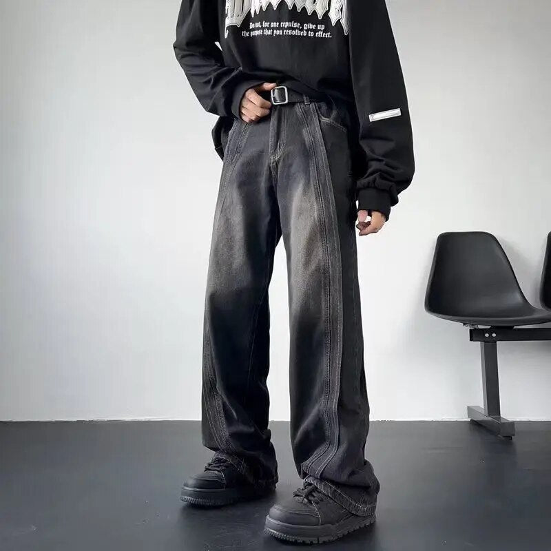 kamames American High Street Retro Men Washed Pants Y2k Harajuku Hip Hop Loose Jeans Couples Casual Joker Straight Wide-leg Jeans 217-1