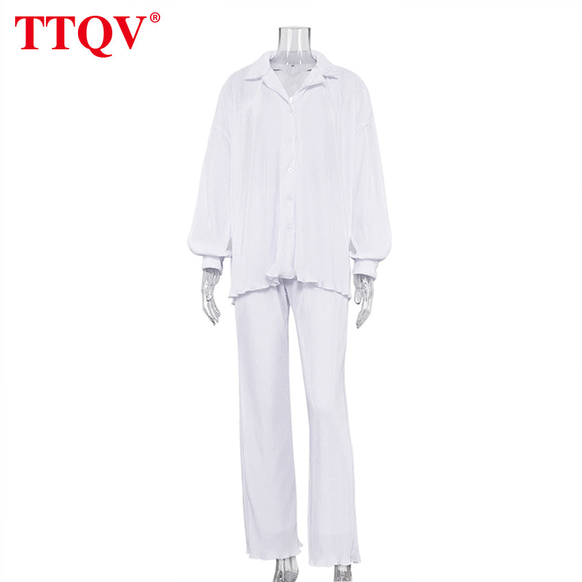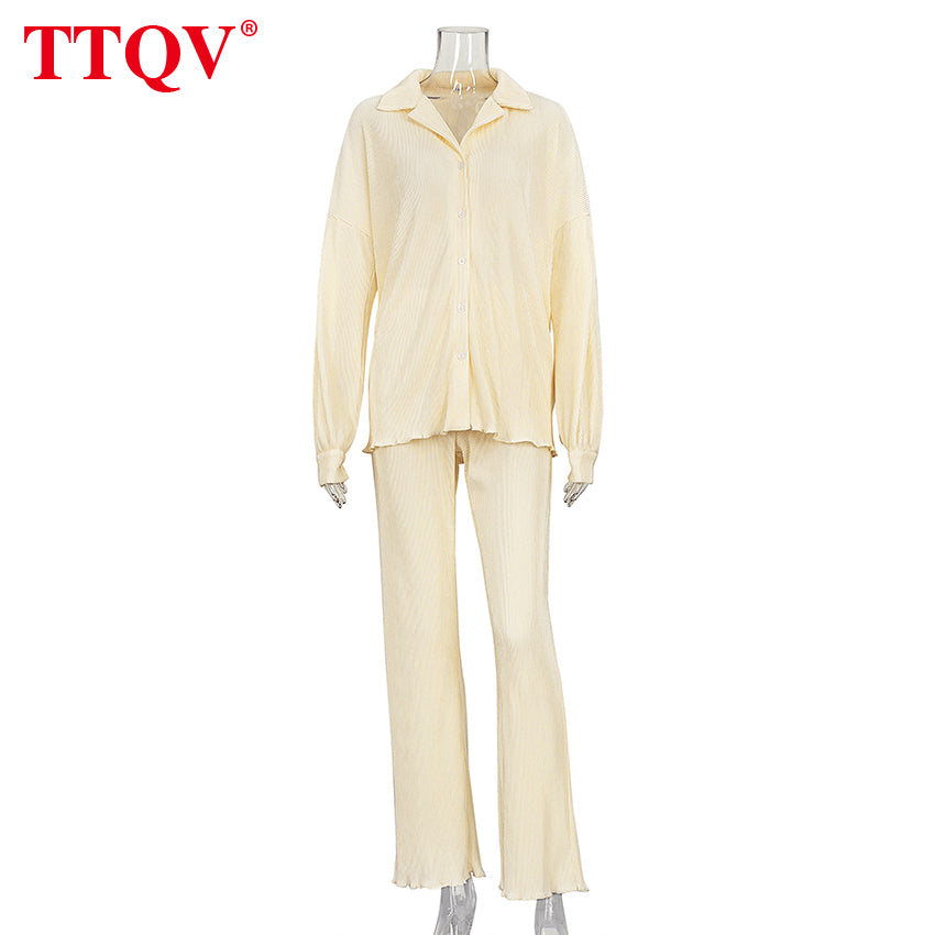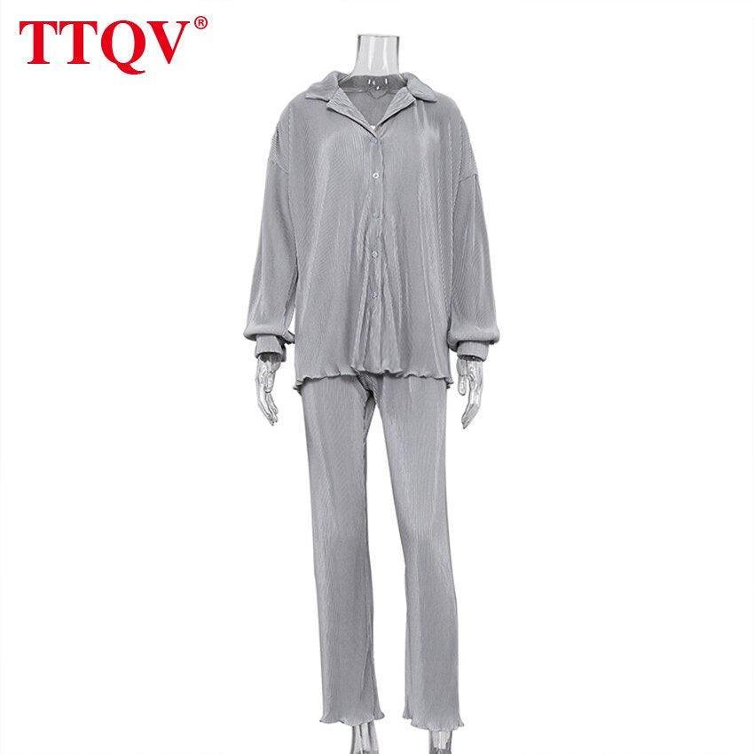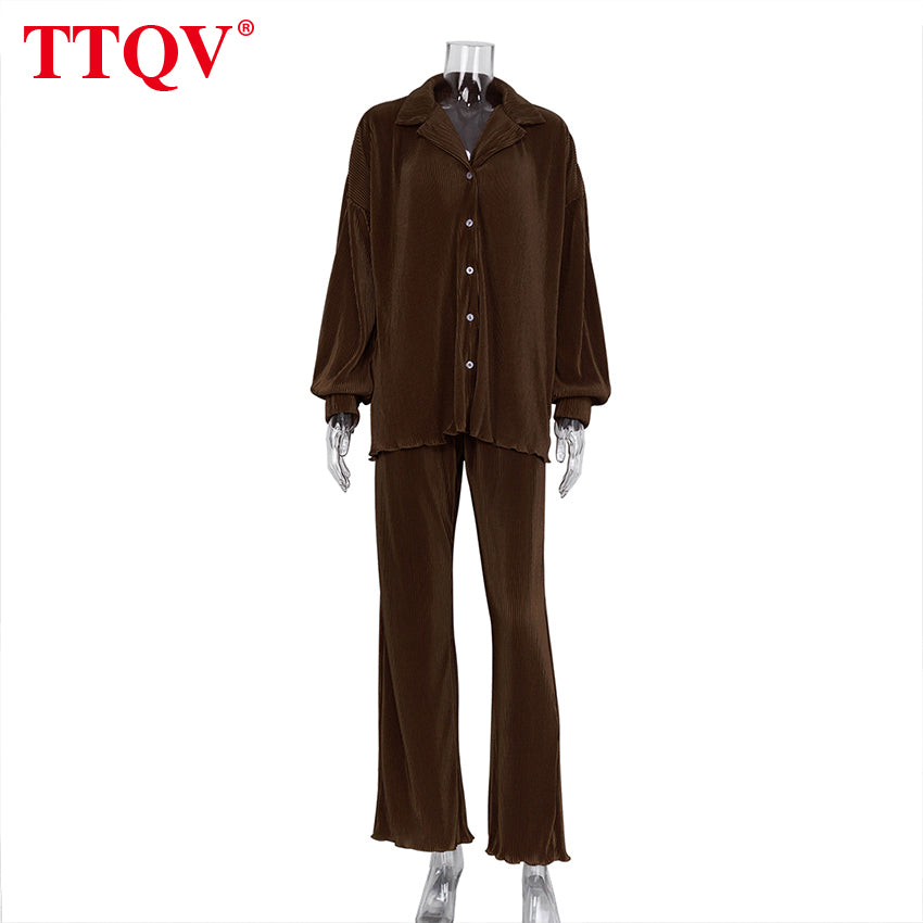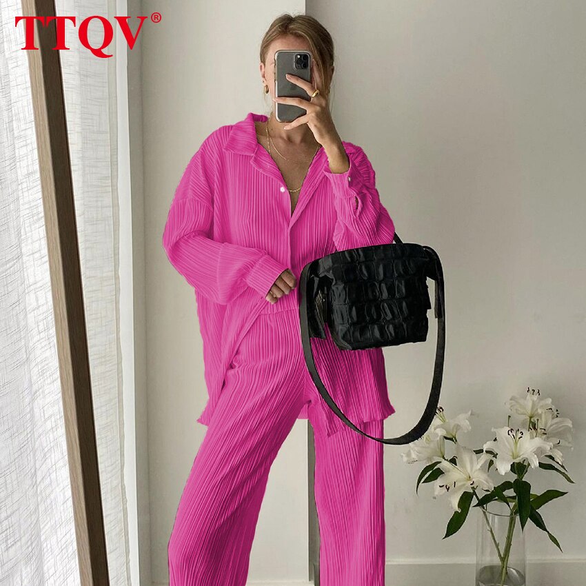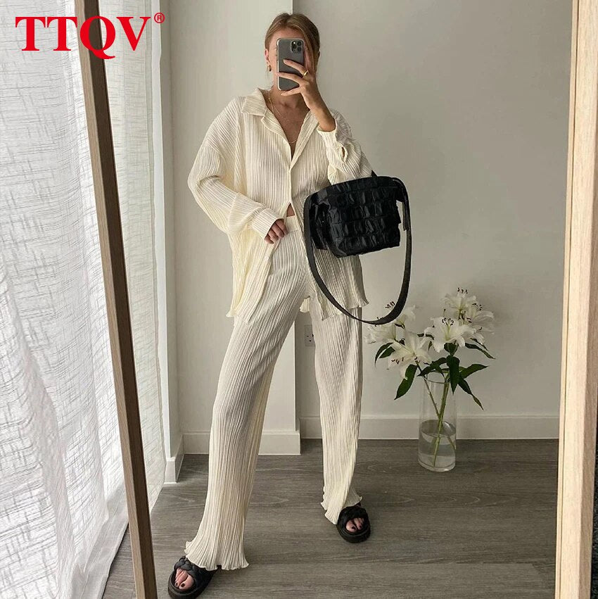 kamames Beige Pleated Wide Leg Women's Pants 2021 Fashion Loose Office Wide Trousers Pants Ladies Elegant Full Length Palazzo Pants