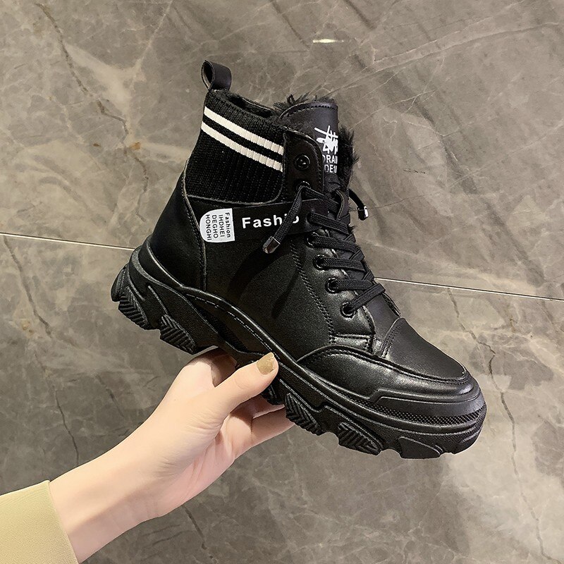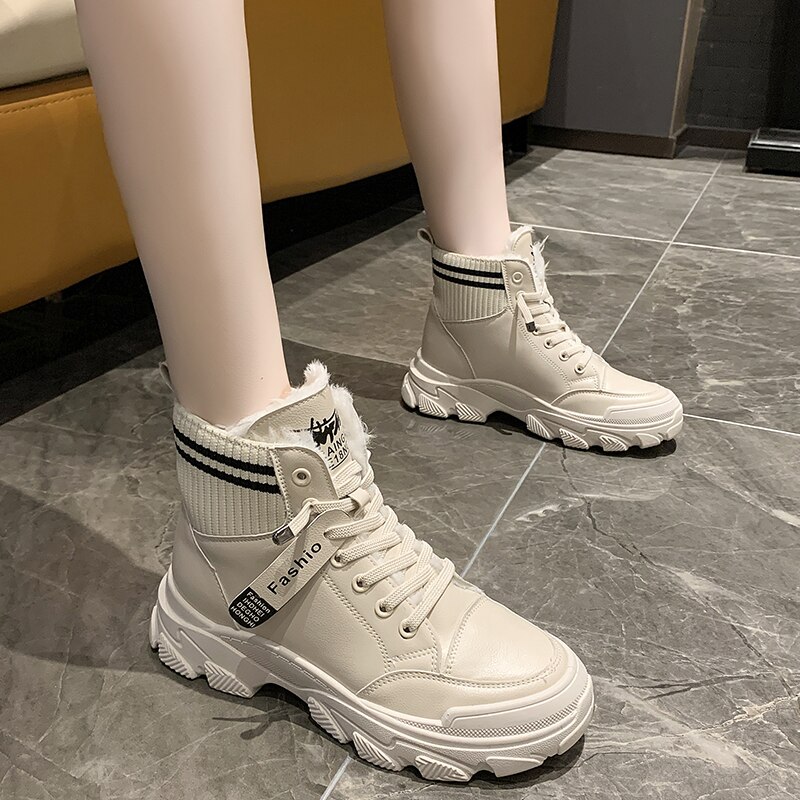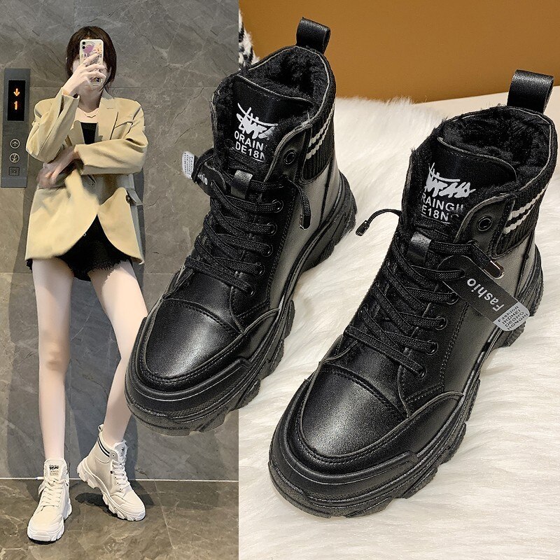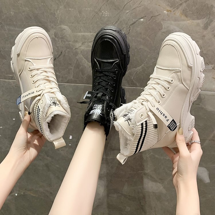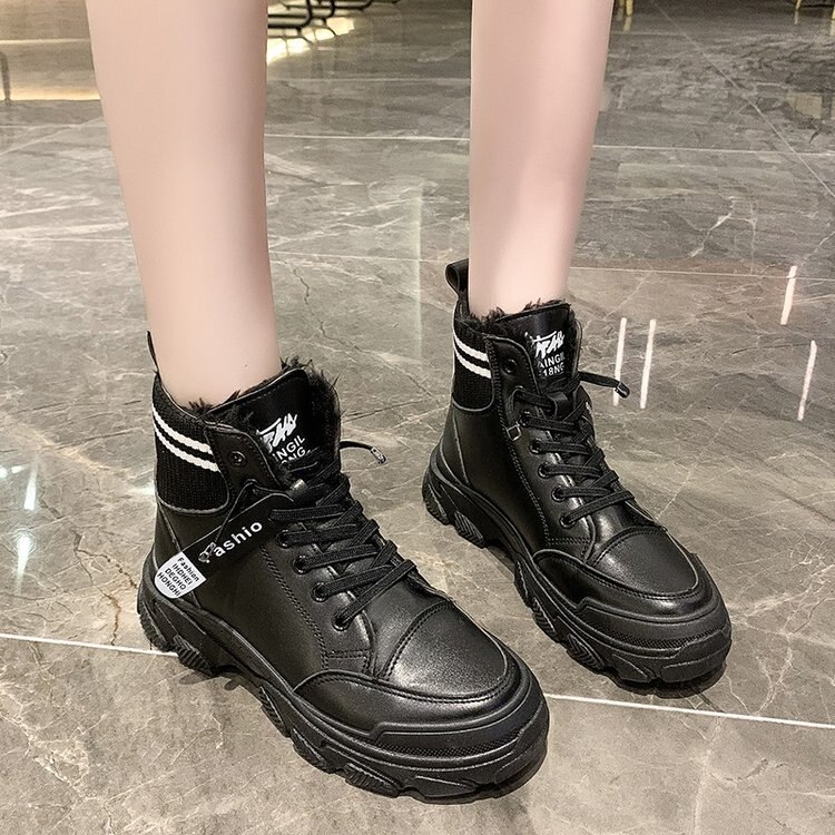 kamames Bottom Chunky Sneakers New Warm Plush Winter Boots for Women Shoes Woman Lace Up Zipper Autumn Fur Ankle Boots
