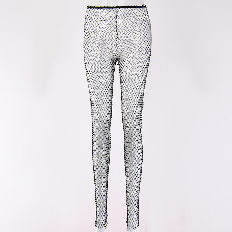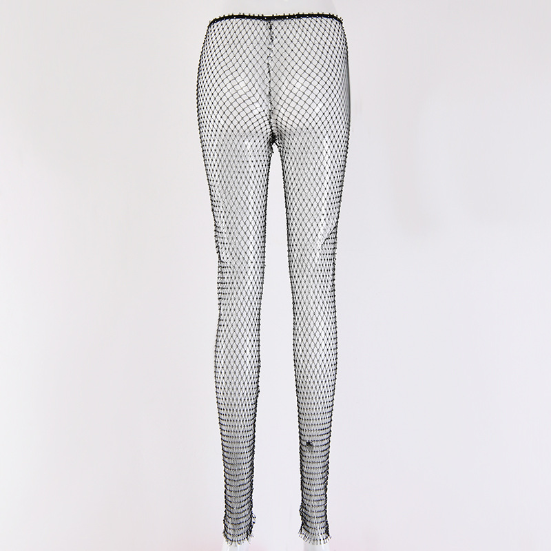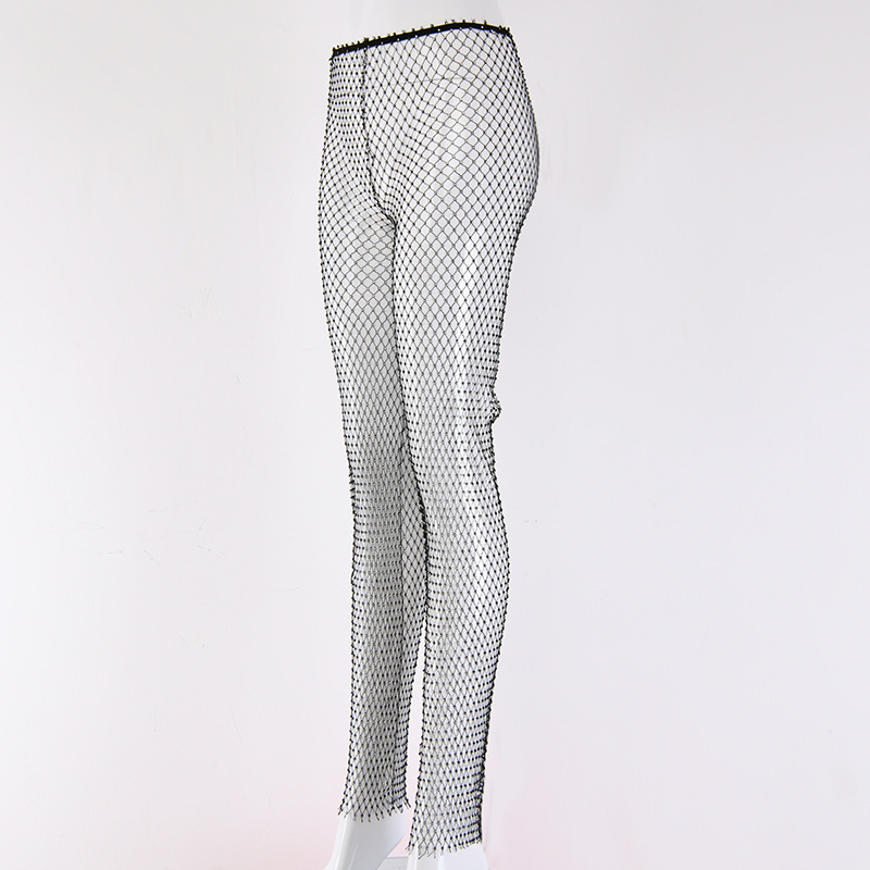 kamames Diamond Mesh Pants Women Sexy Summer Hollow Out Transparent Loose Long Fishnet Pants 2024 New BeachWear Trousers