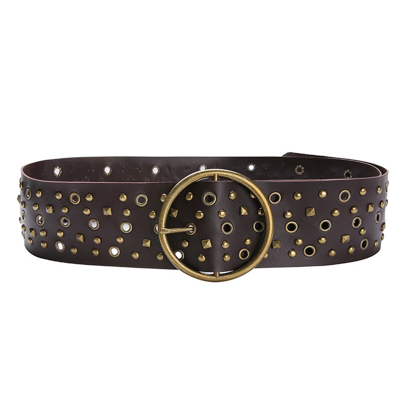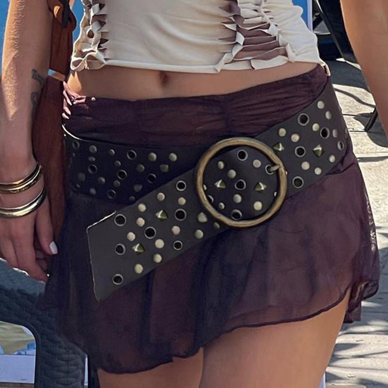 kamames Girls Fashionable Retro Rivet Ring PU Leather Belt 2024 Sexy Waist Elastic Waist Seal Accessories Belt