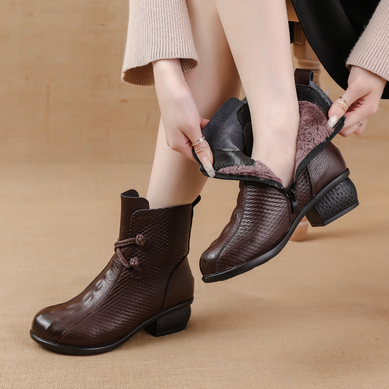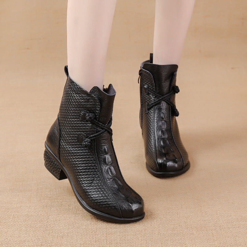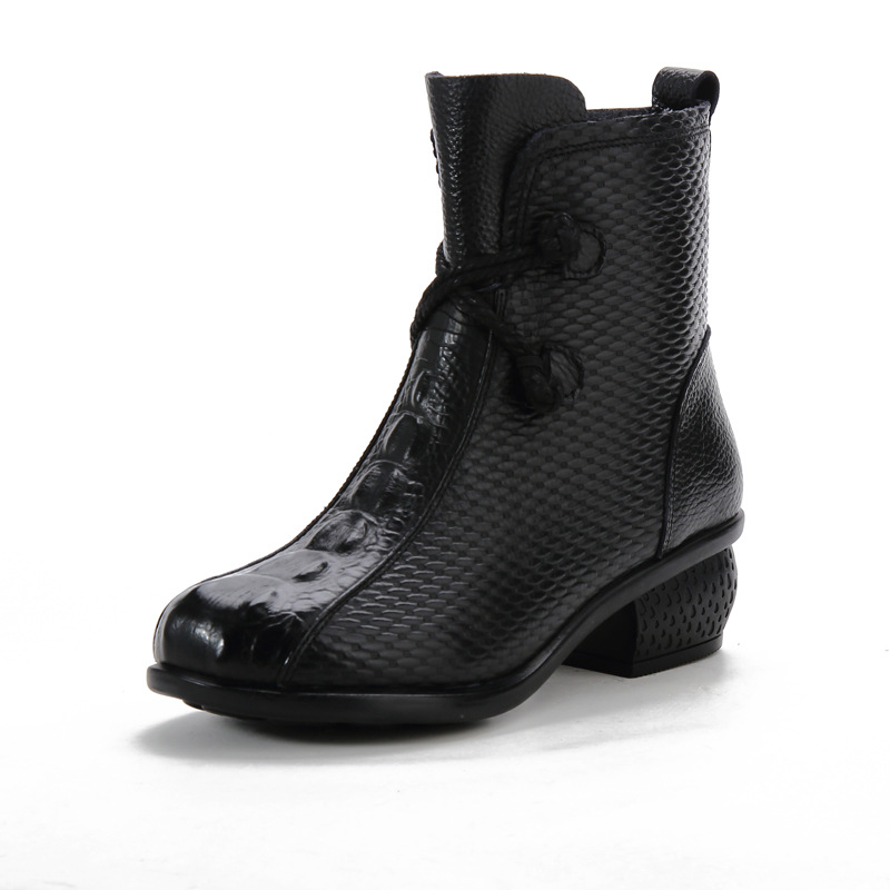 kamames kamames Autumn New Low-Heeled Crocodile Martin Boots Korean Version Leisure Fashion Leather Boots Warm And Comfortable Cotton Shoes