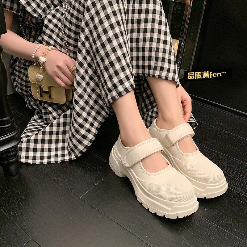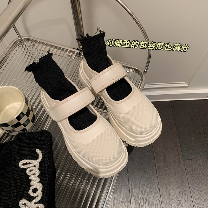 kamames kamames ~Cao Beautiful Texture Ugly Cute Single Shoes 2024 Cowhide Muffin Velcro Casual Ma