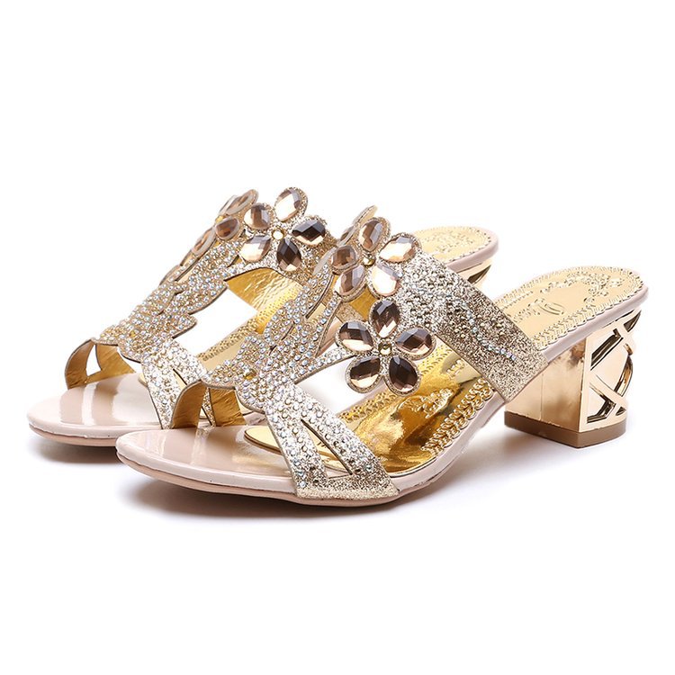 kamames kamames Female 2023 New Thick Heel Open Toe Women's Shoes Hollow Out Diamond Wear High Heel Cool Drag