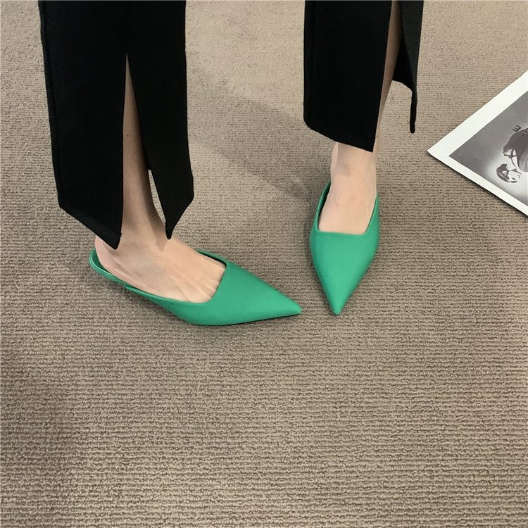 kamames kamames Half Slippers Female Summer New Style 2023 Thin Heel Pointed Lazy People Wear Low Heel Set Foot Muller Shoes Cool Drag Female