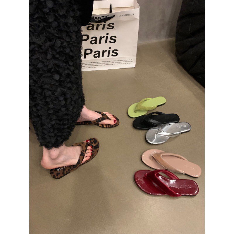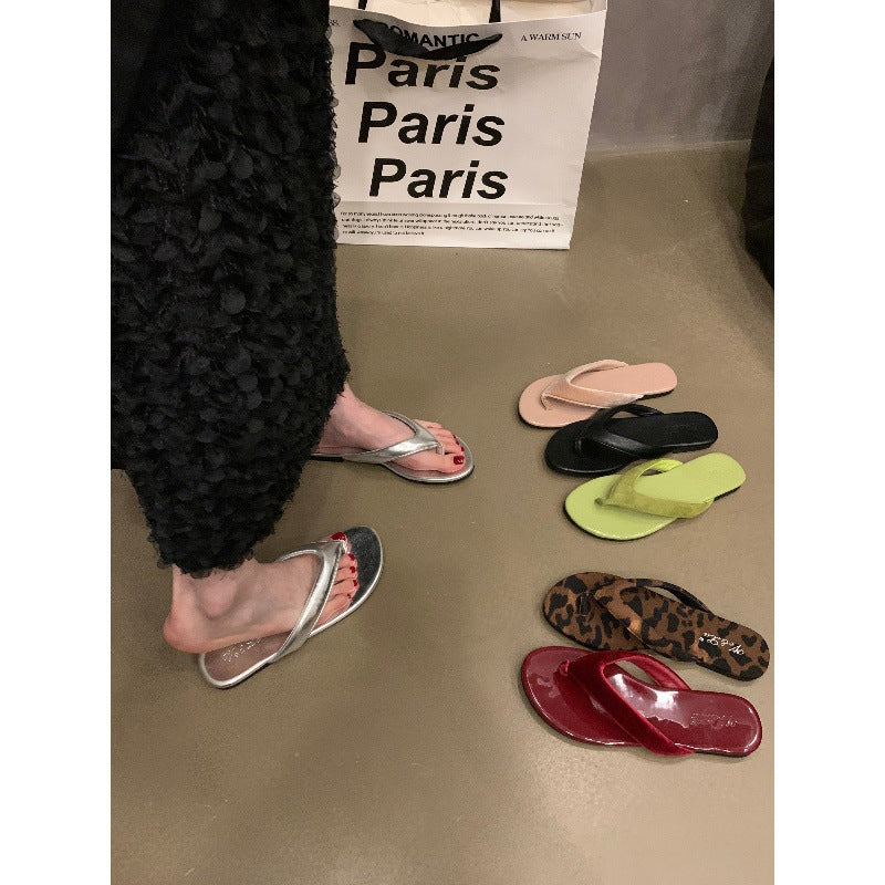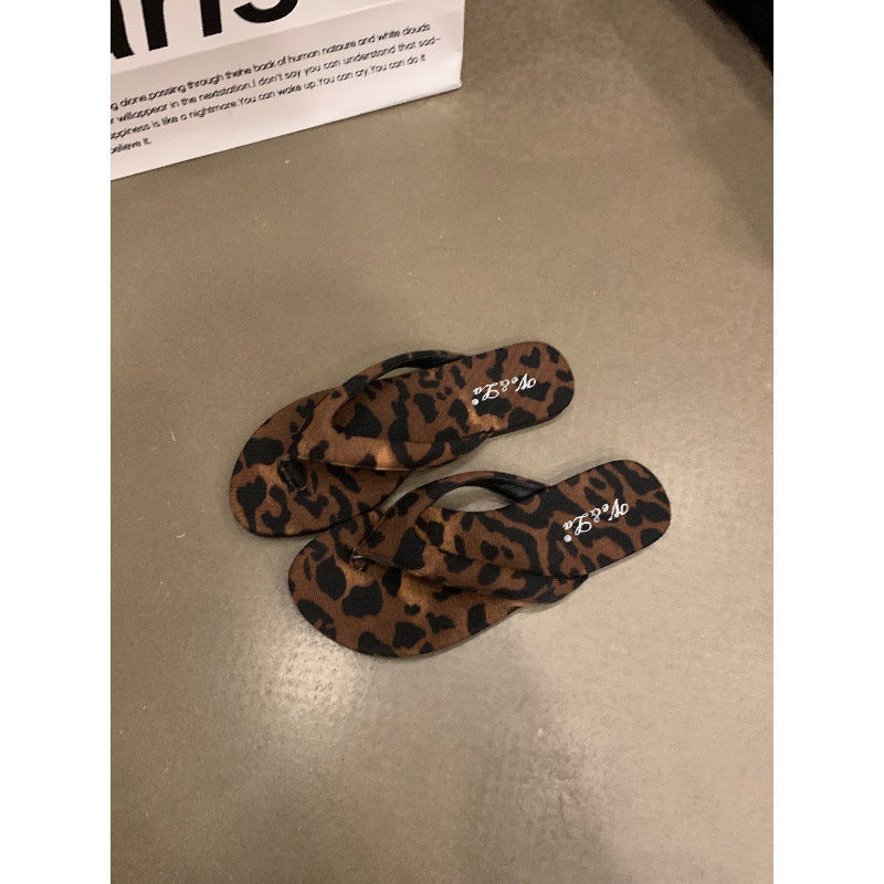 kamames kamames Ins Flat Silver Flip-Flops Women Summer Wear Leopard Print Sandals Beach Clip Women's Shoes