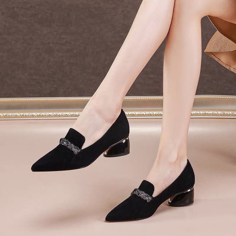 kamames kamames New 2024 Korean Edition Fashion Pointed Thick Heel Single Shoes Women Pedal Casual High Heel Women's Shoes