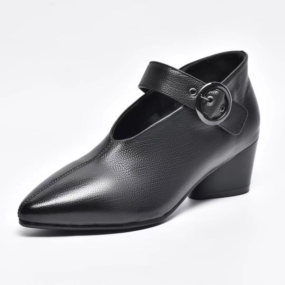 kamames kamames New Small Leather Korean Version Fashion Grandma Toe Layer Leather Fashion Single Shoes Autumn Women's Single Shoes Tip