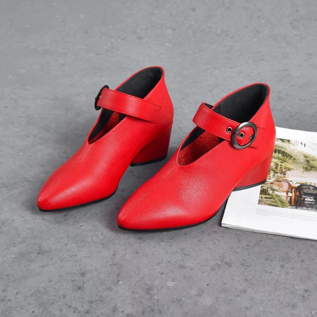 kamames kamames New Small Leather Korean Version Fashion Grandma Toe Layer Leather Fashion Single Shoes Autumn Women's Single Shoes Tip