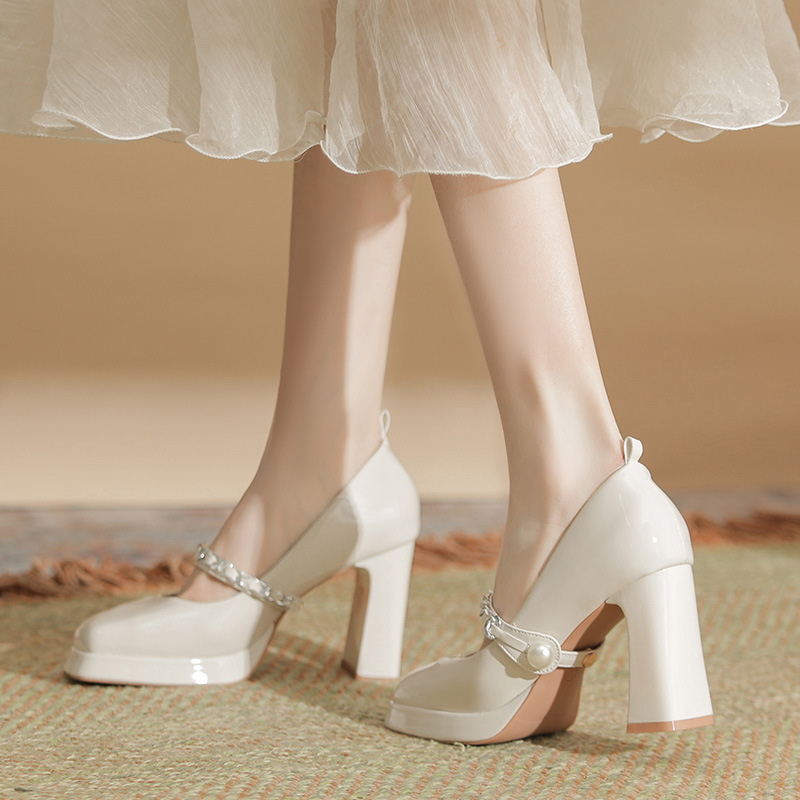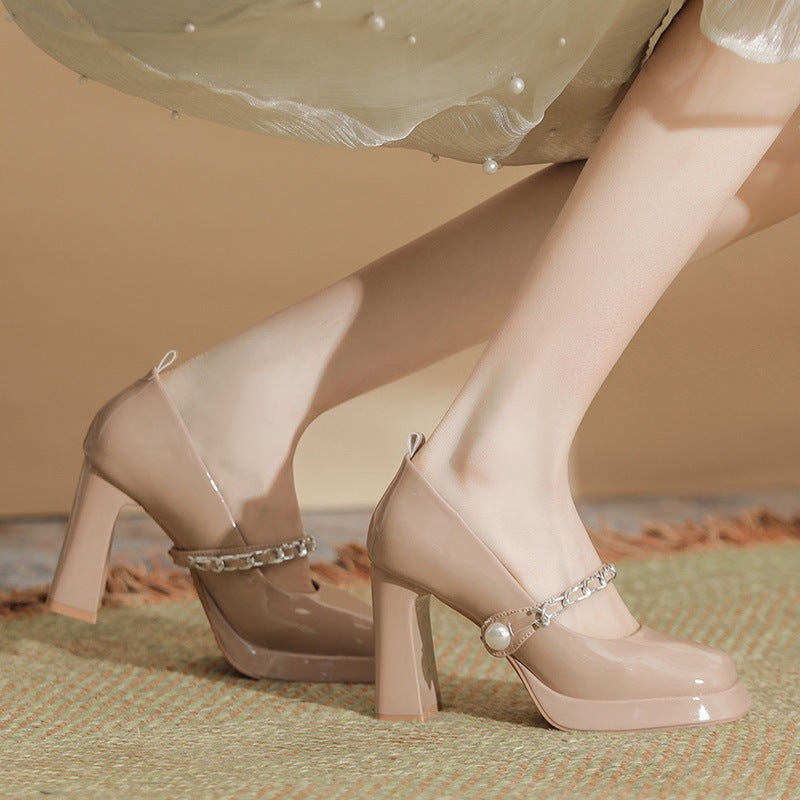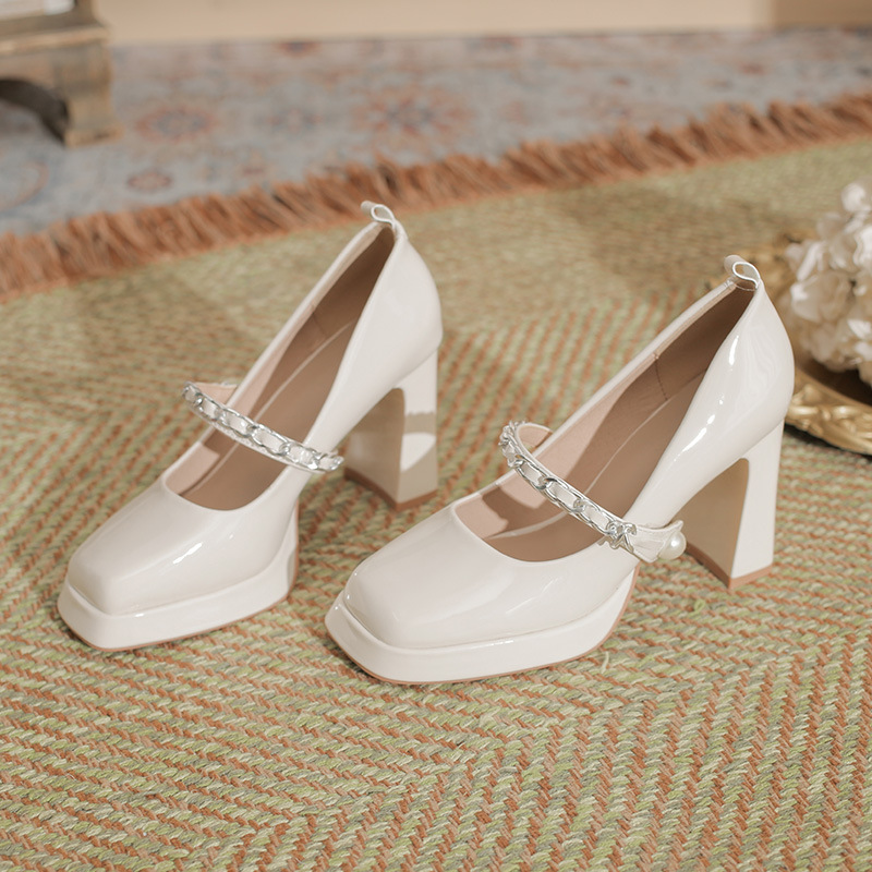 kamames kamames Pearl New Square Head Shallow Mouth Thick With Patent Leather A Word Buckle Mary Single Shoes Jane High Heels Waterproof Platform